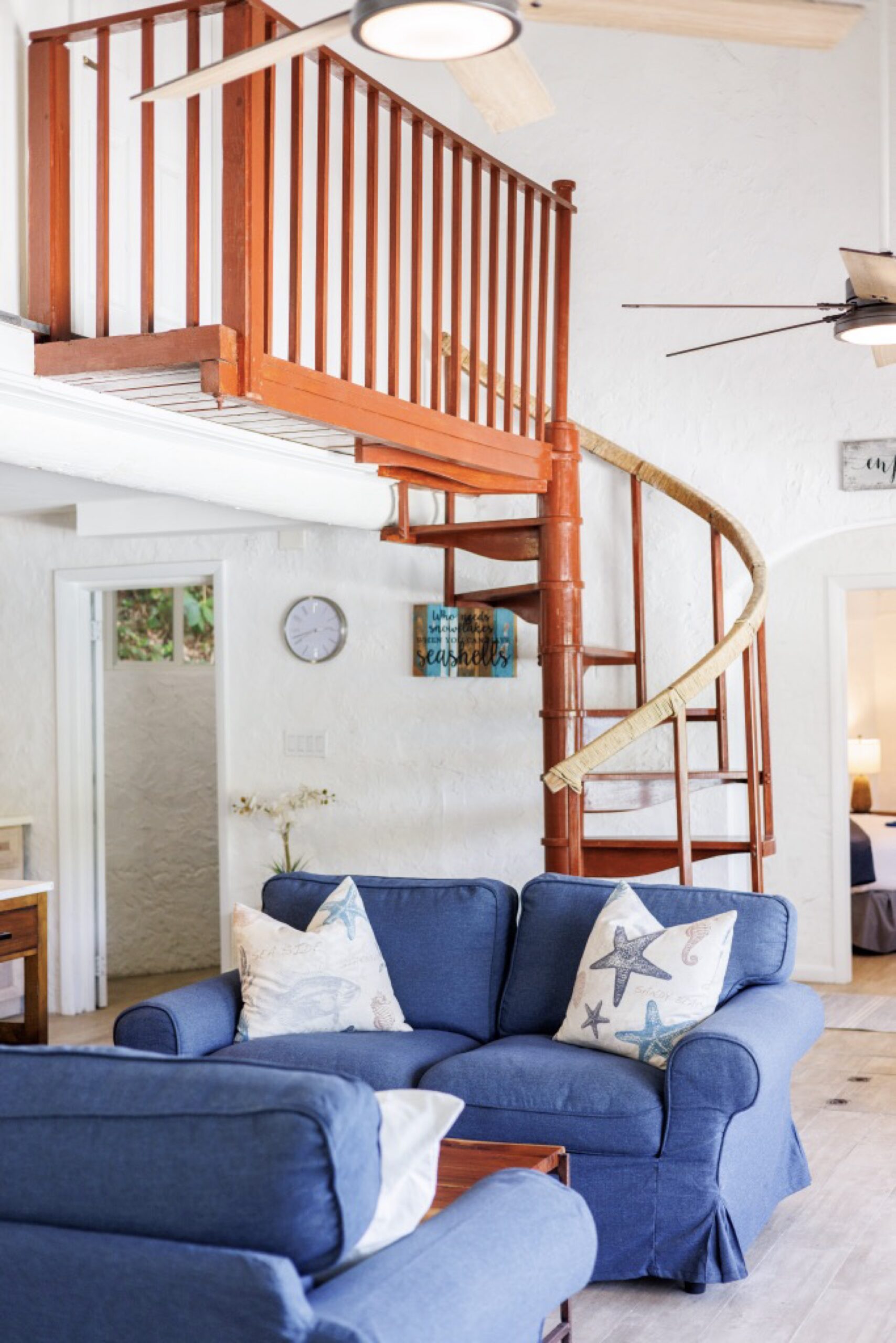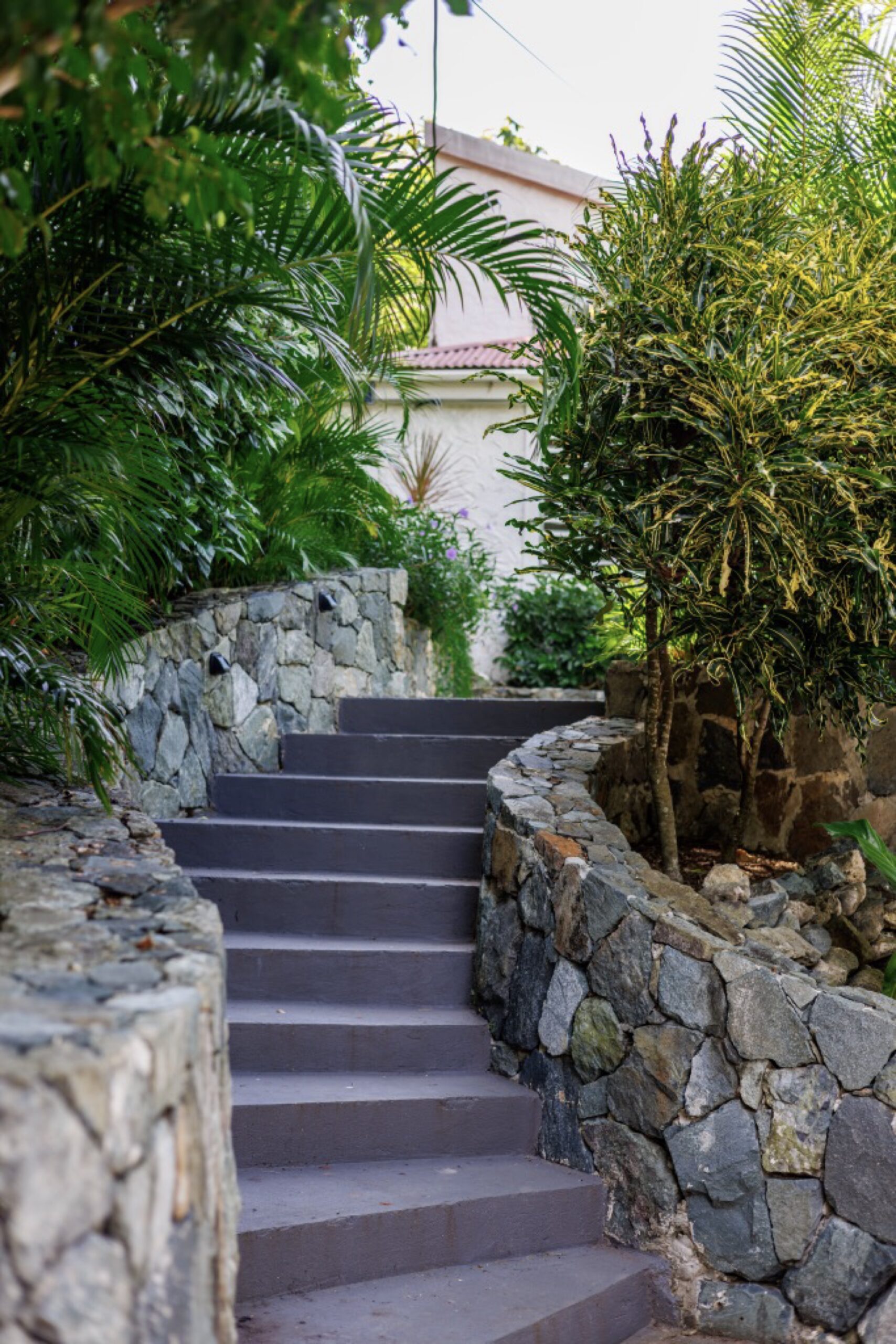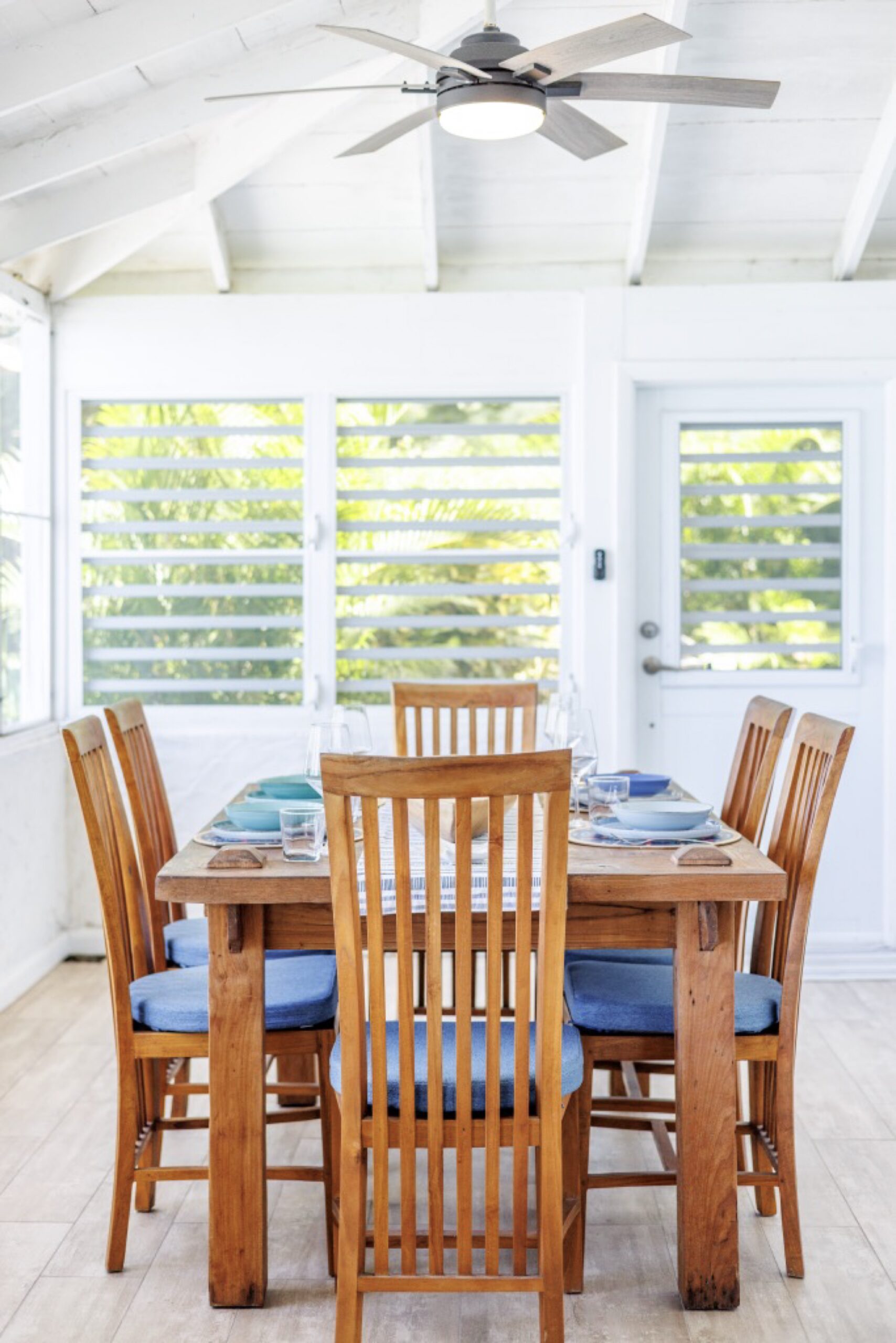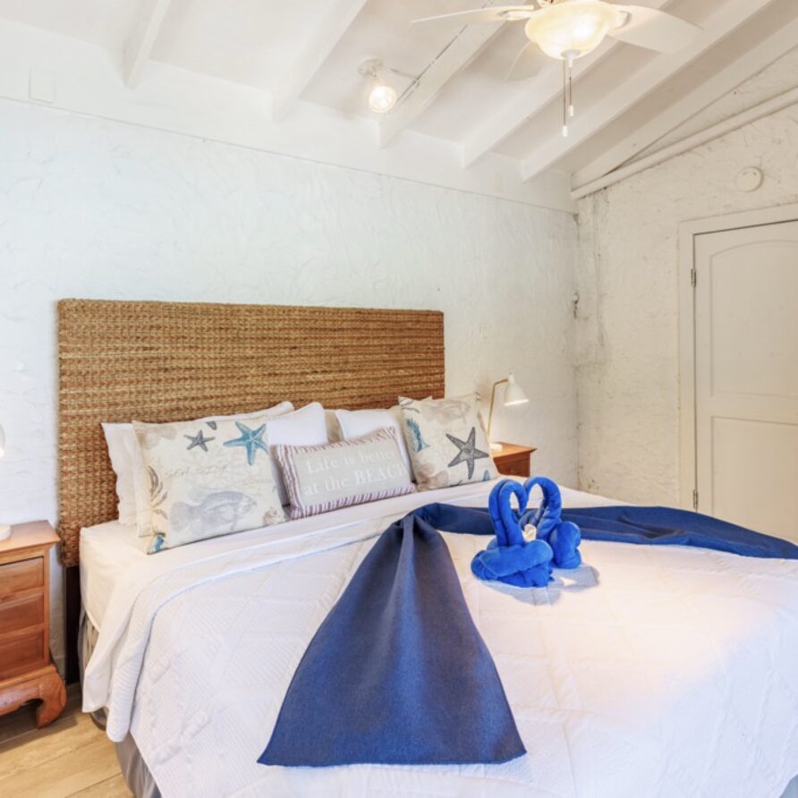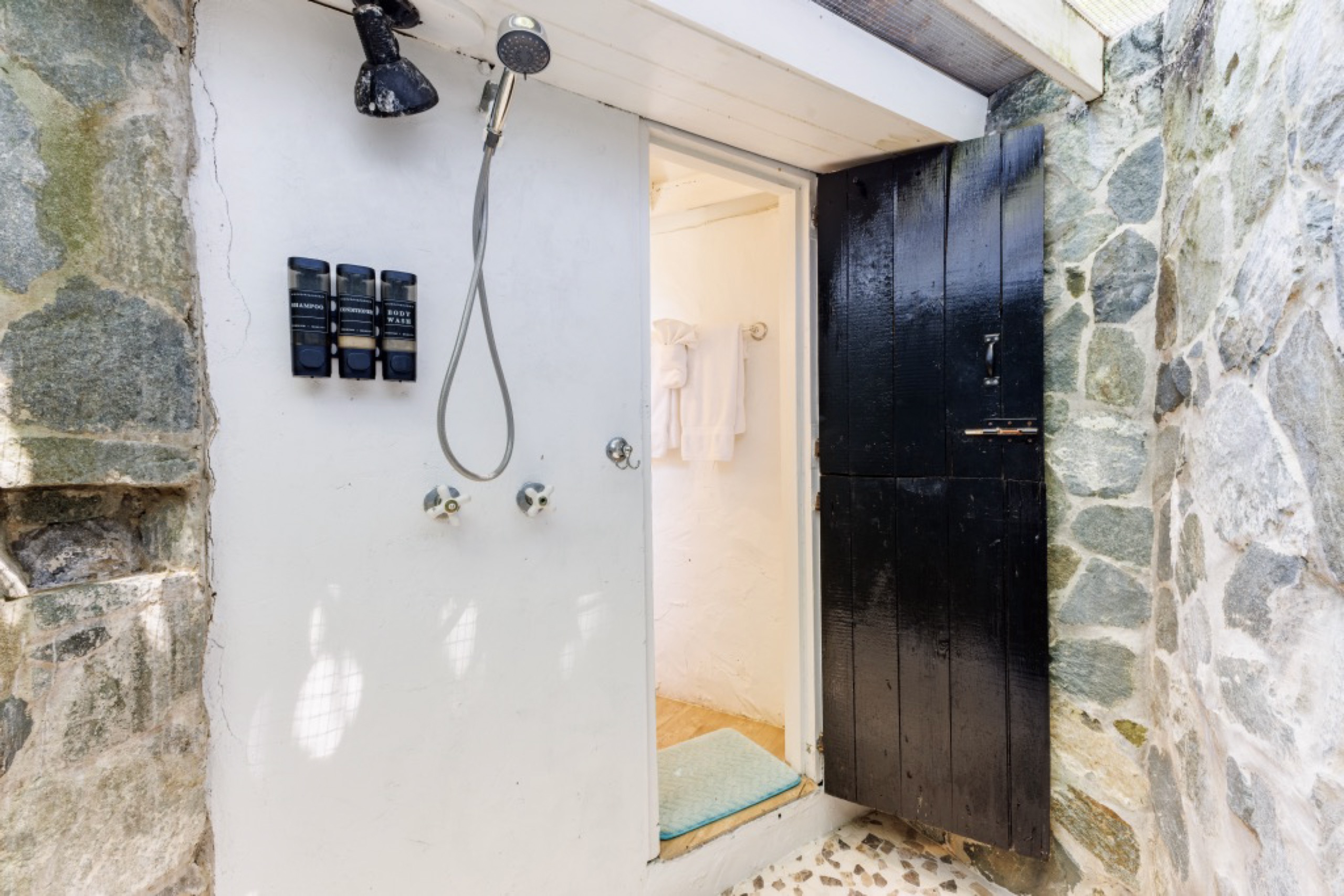 The outside seating area is right on the bay and has loungers, a picnic table and a grill for dining al fresco. Solar lights surround the seating area to provide illumination in the evenings. You may access the beach by a few easy steps from the villa.