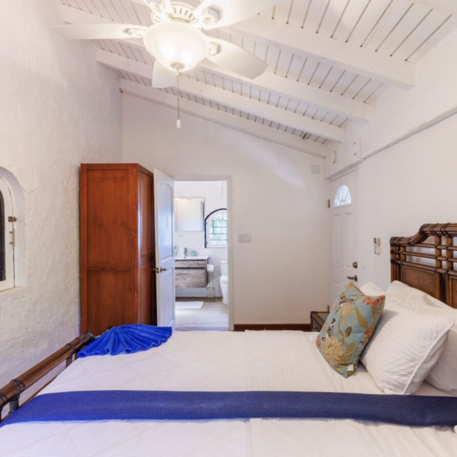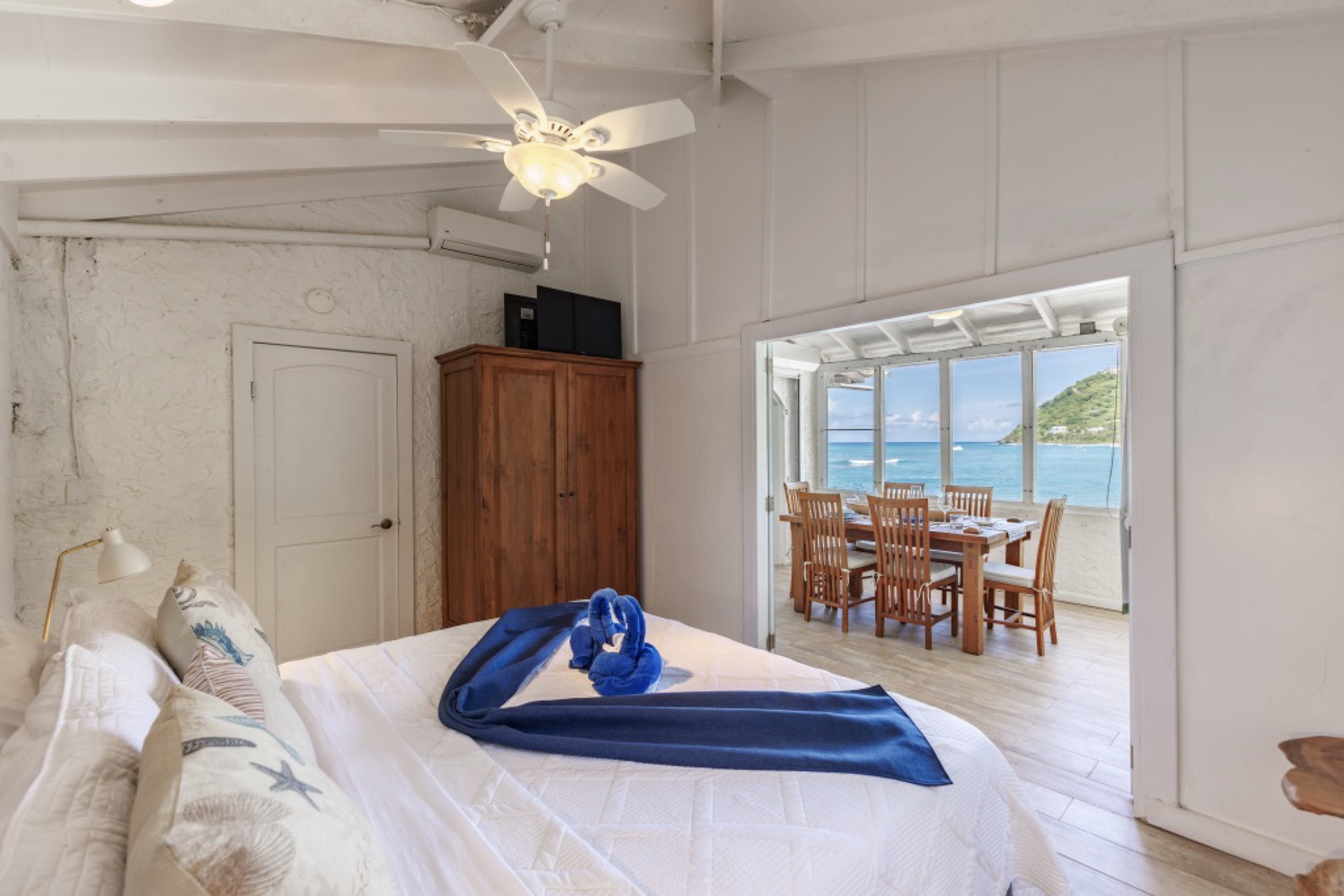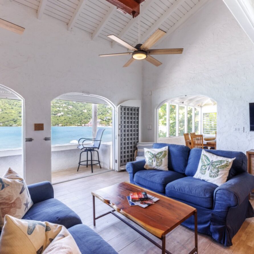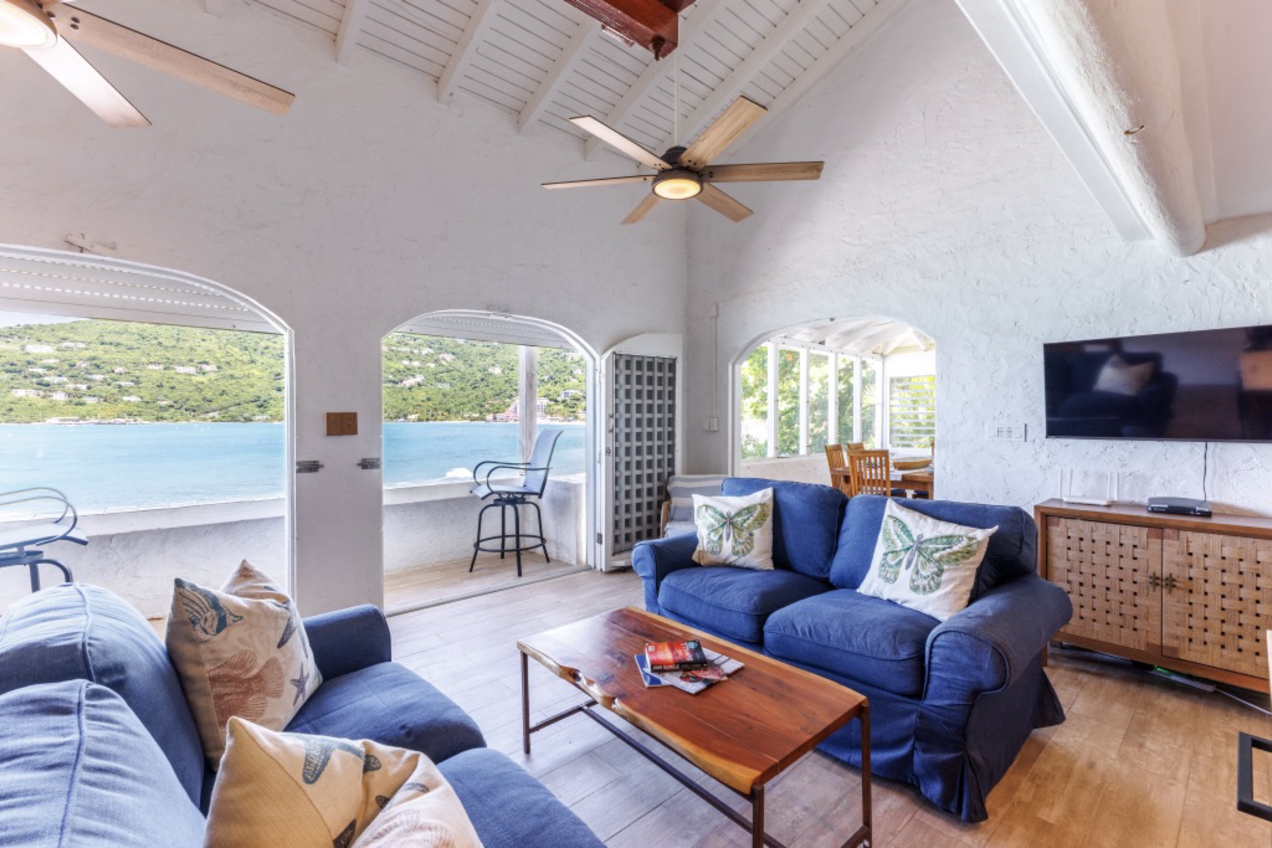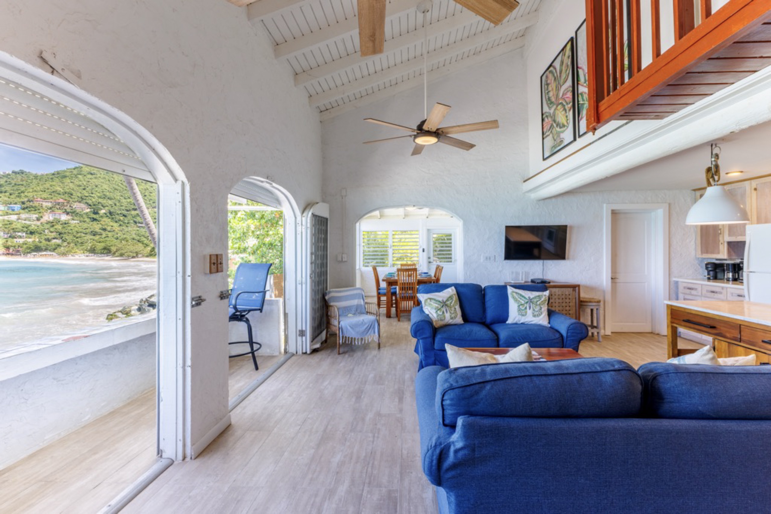 Cane Garden Bay Beach House is an iconic fixture in Cane Garden Bay. Located right on the bay it has been completely remodeled since Hurricane’s Irma and Maria. The villa offers 3 bedrooms with king beds, two of which are en-suite. Each bedroom offers the option of air conditioning or open windows to let in the sea breeze. The open concept kitchen and living area offer breathtaking views of Cane Garden Bay and let in the soothing sound of the ocean. The kitchen has all the bells and whistles to cook a wonderful meal at home to dine in the screened in dining area or the many restaurants in Cane Garden Bay are a short walk away.