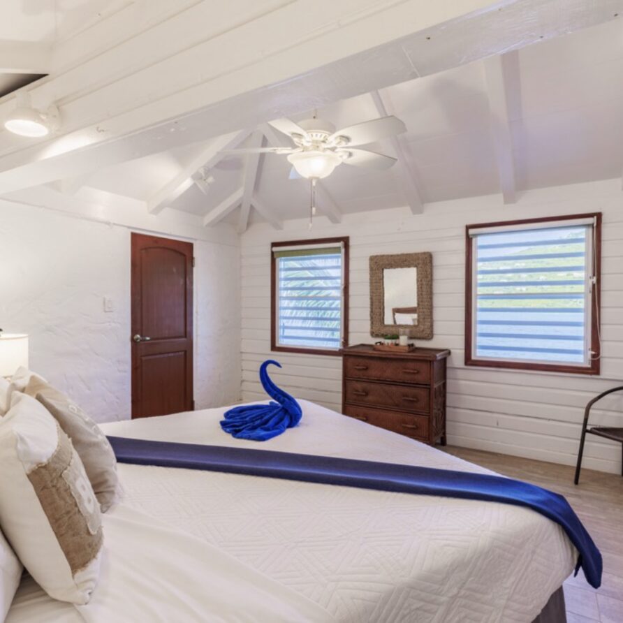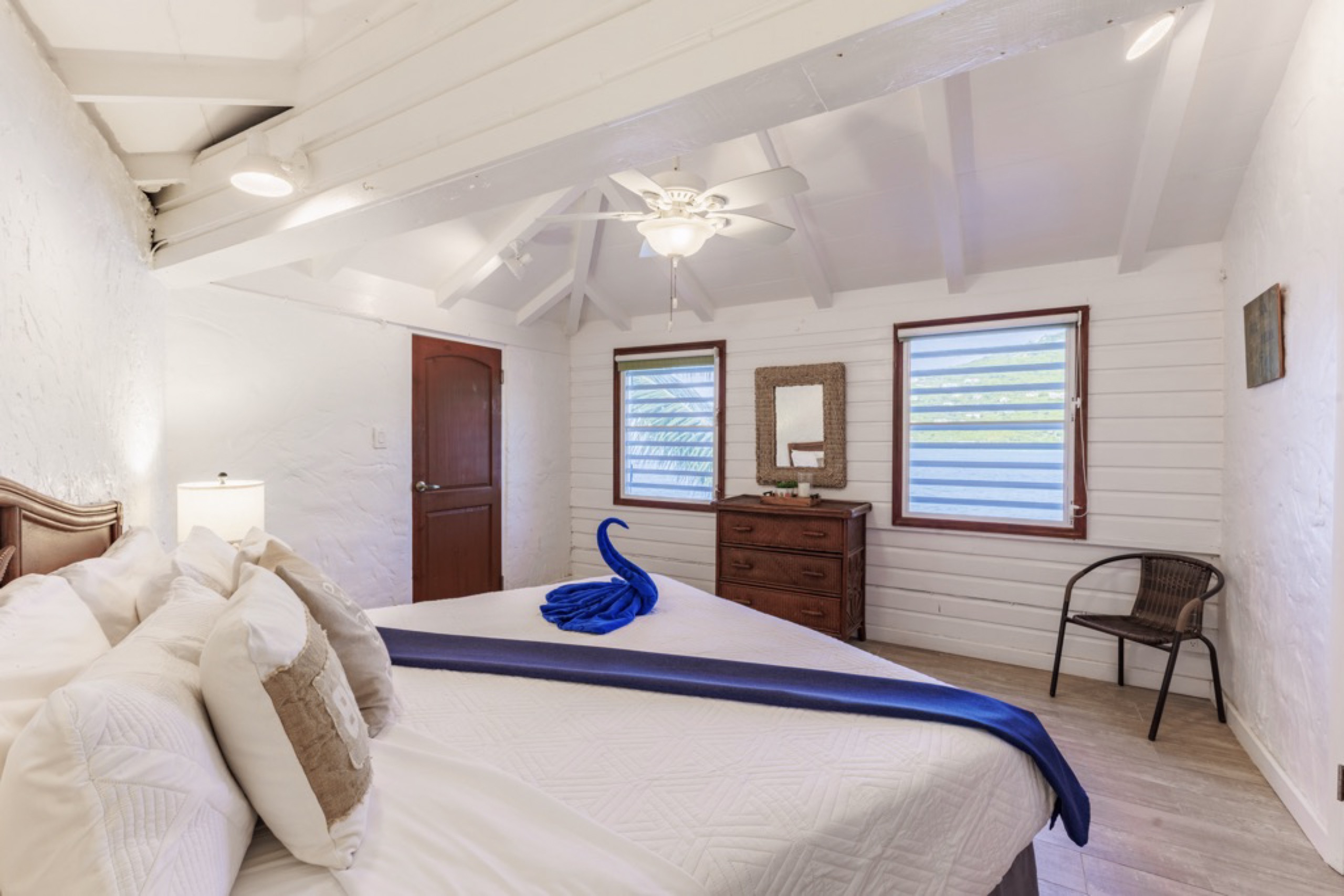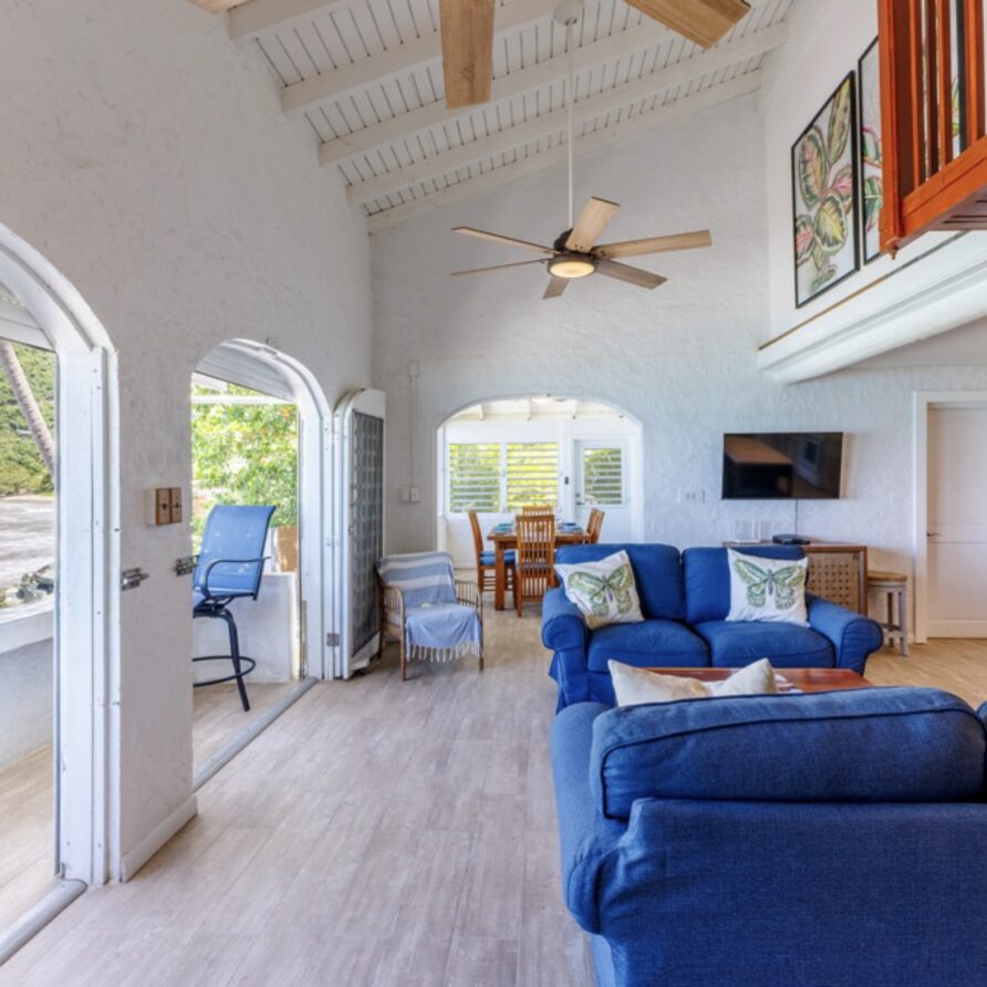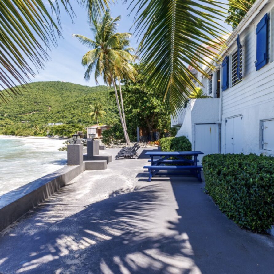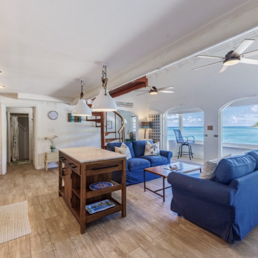 Cane Garden Bay Beach House is an iconic fixture in Cane Garden Bay. Located right on the bay it has been completely remodeled since Hurricane’s Irma and Maria. The villa offers 3 bedrooms with king beds, two of which are en-suite. Each bedroom offers the option of air conditioning or open windows to let in the sea breeze. The open concept kitchen and living area offer breathtaking views of Cane Garden Bay and let in the soothing sound of the ocean. The kitchen has all the bells and whistles to cook a wonderful meal at home to dine in the screened in dining area or the many restaurants in Cane Garden Bay are a short walk away.