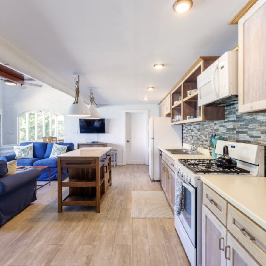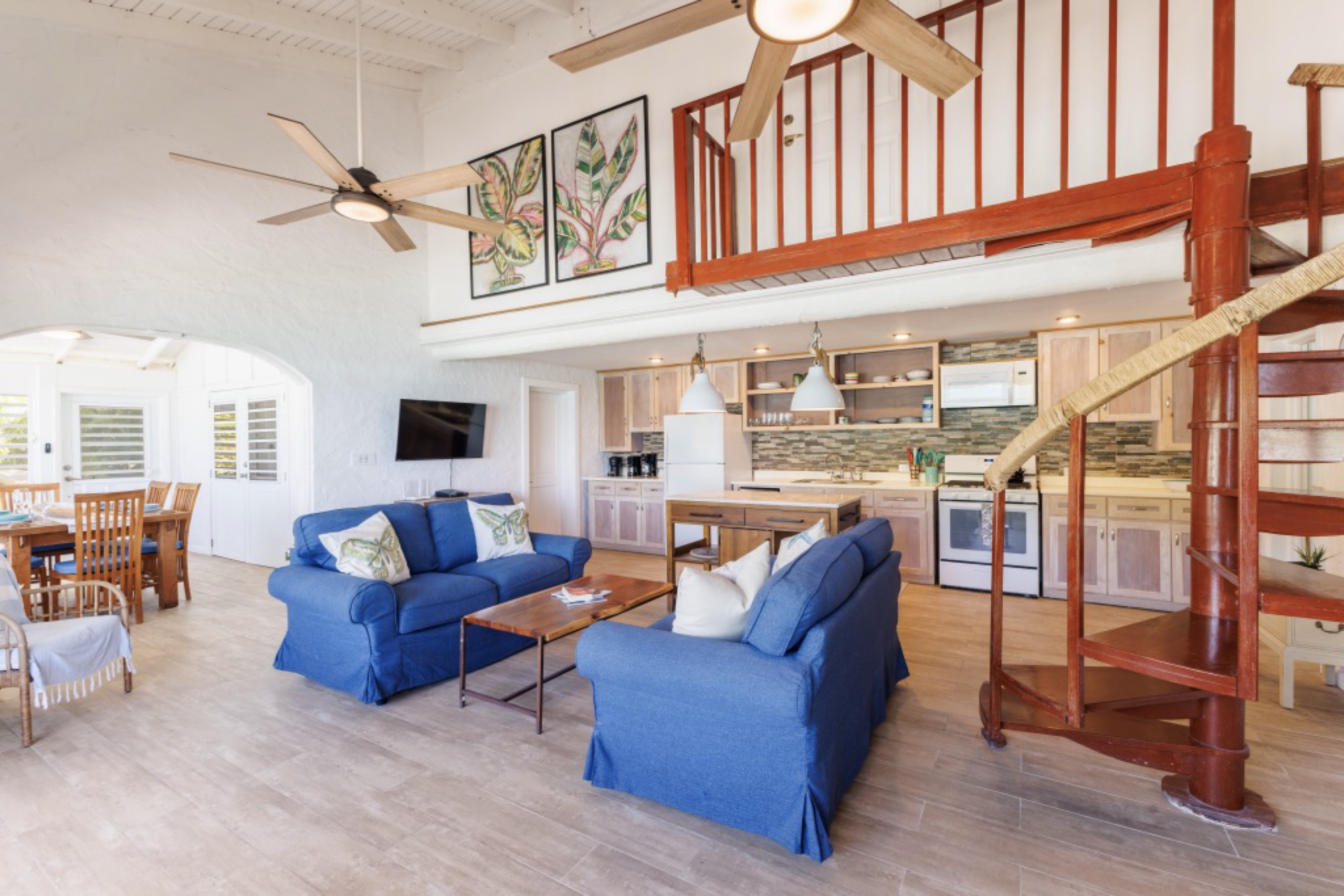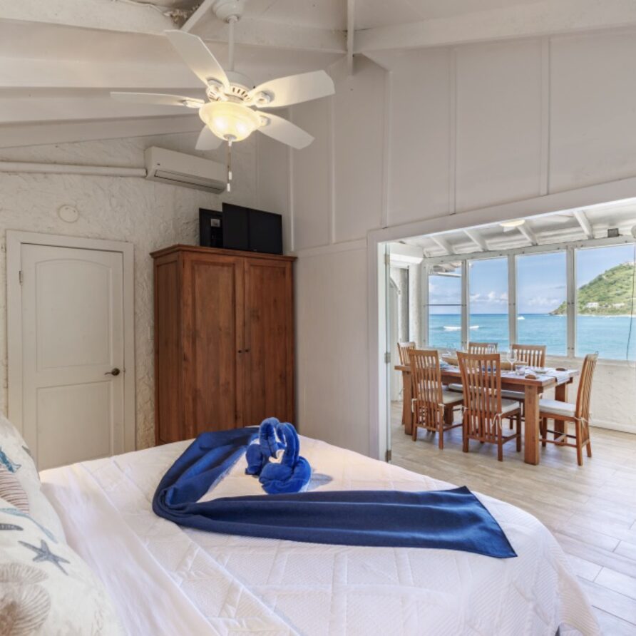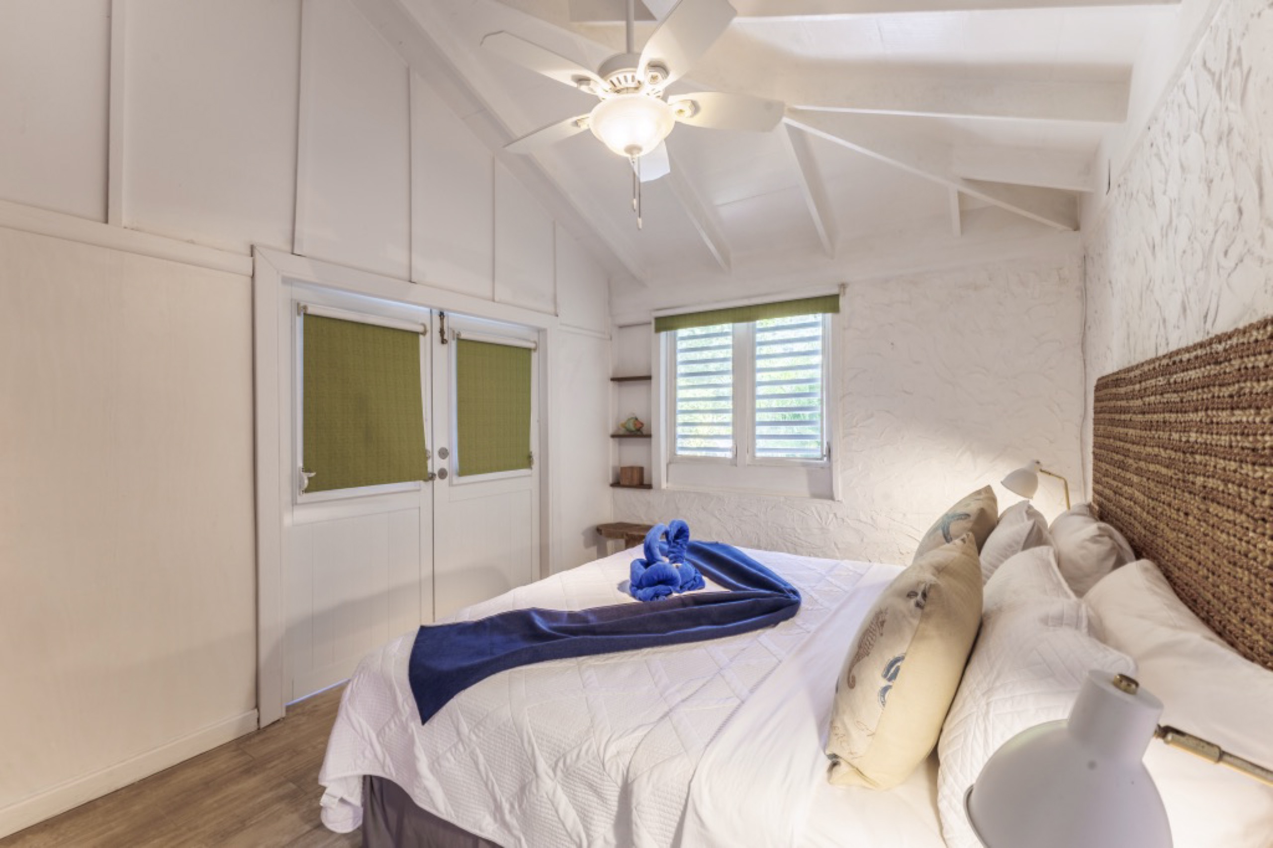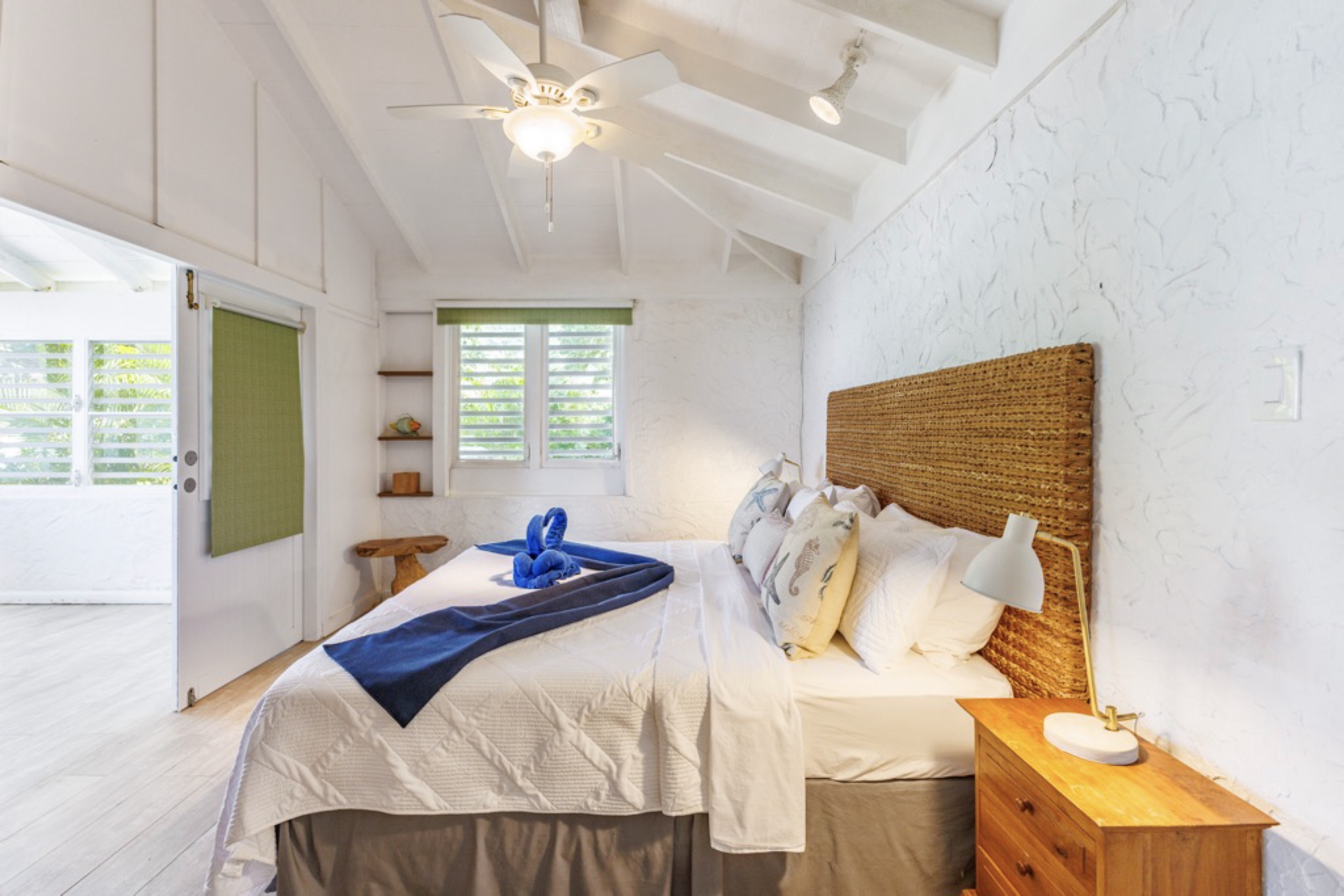 Cane Garden Bay Beach House is an iconic fixture in Cane Garden Bay. Located right on the bay it has been completely remodeled since Hurricane’s Irma and Maria. The villa offers 3 bedrooms with king beds, two of which are en-suite. Each bedroom offers the option of air conditioning or open windows to let in the sea breeze. The open concept kitchen and living area offer breathtaking views of Cane Garden Bay and let in the soothing sound of the ocean. The kitchen has all the bells and whistles to cook a wonderful meal at home to dine in the screened in dining area or the many restaurants in Cane Garden Bay are a short walk away.