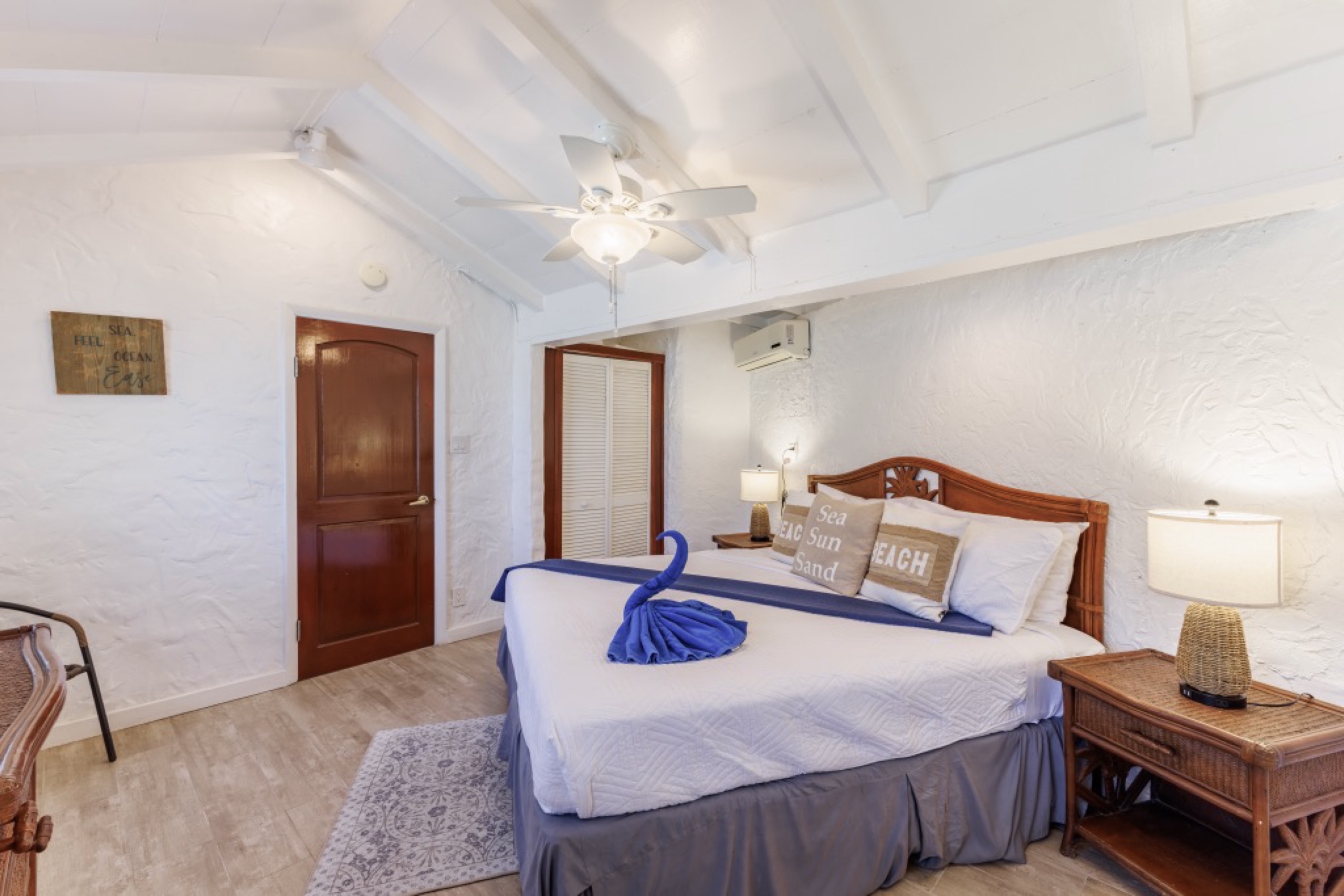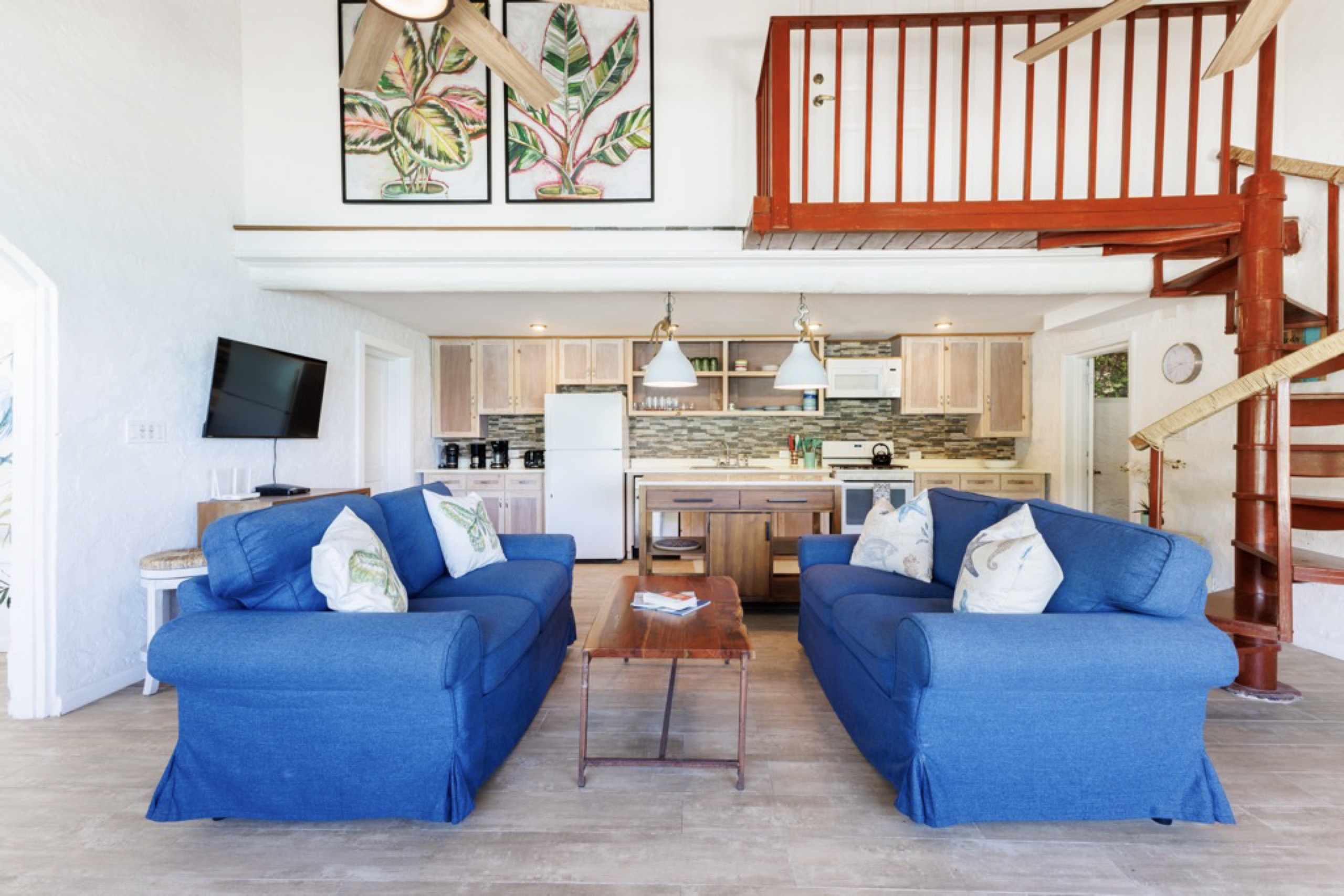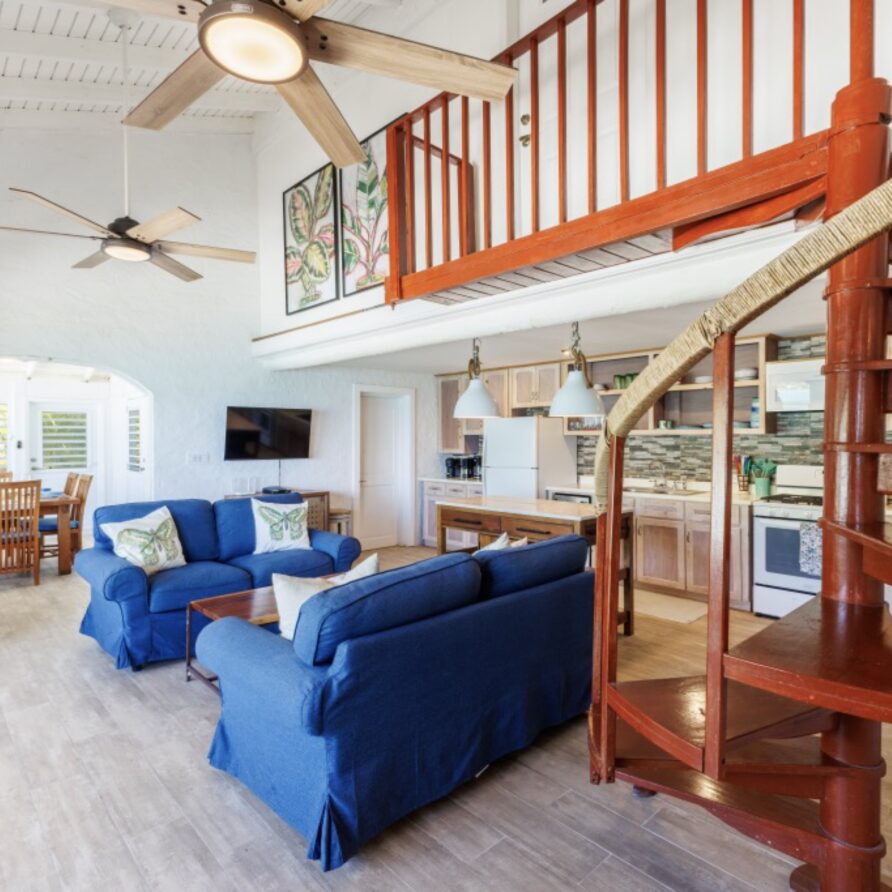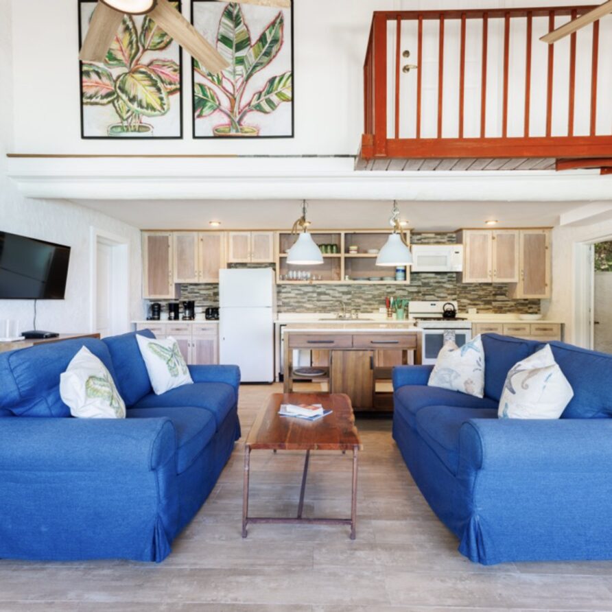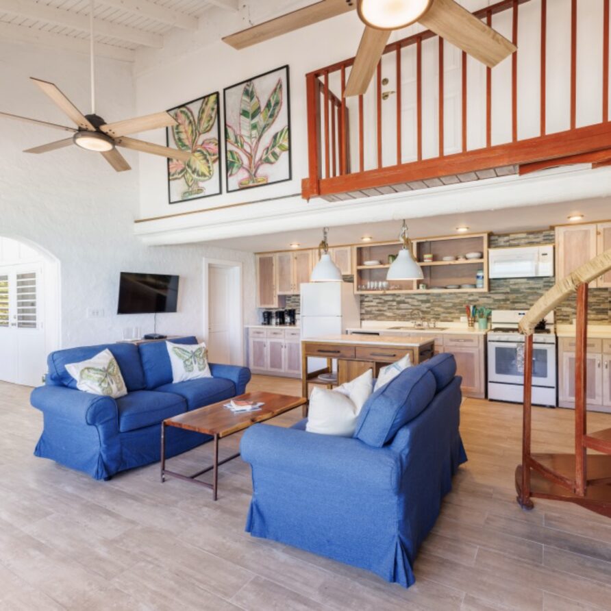 Cane Garden Bay Beach House is an iconic fixture in Cane Garden Bay. Located right on the bay it has been completely remodeled since Hurricane’s Irma and Maria. The villa offers 3 bedrooms with king beds, two of which are en-suite. Each bedroom offers the option of air conditioning or open windows to let in the sea breeze. The open concept kitchen and living area offer breathtaking views of Cane Garden Bay and let in the soothing sound of the ocean. The kitchen has all the bells and whistles to cook a wonderful meal at home to dine in the screened in dining area or the many restaurants in Cane Garden Bay are a short walk away.