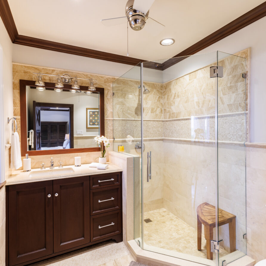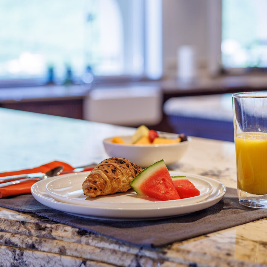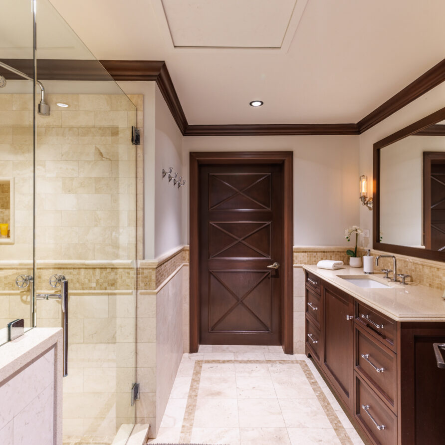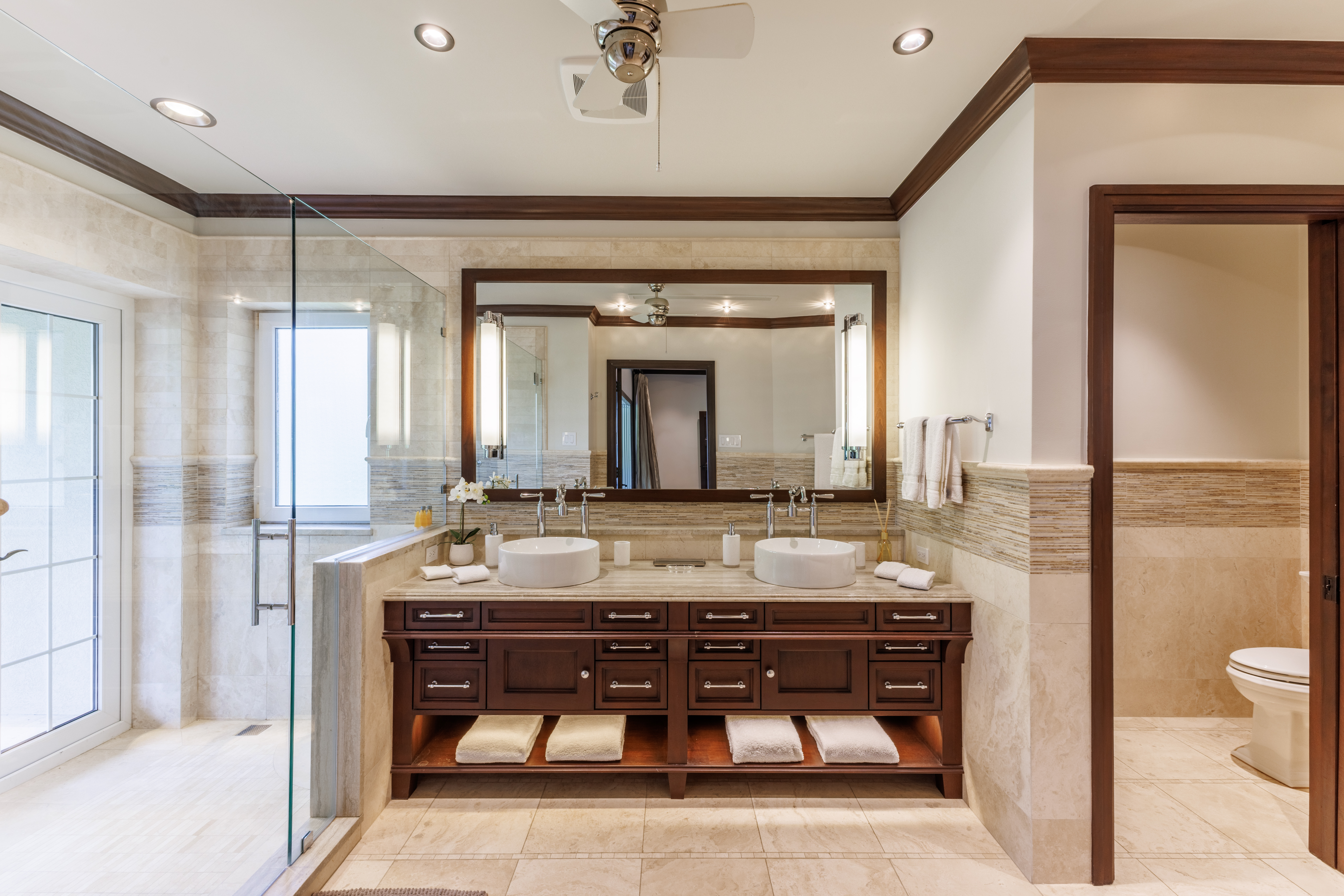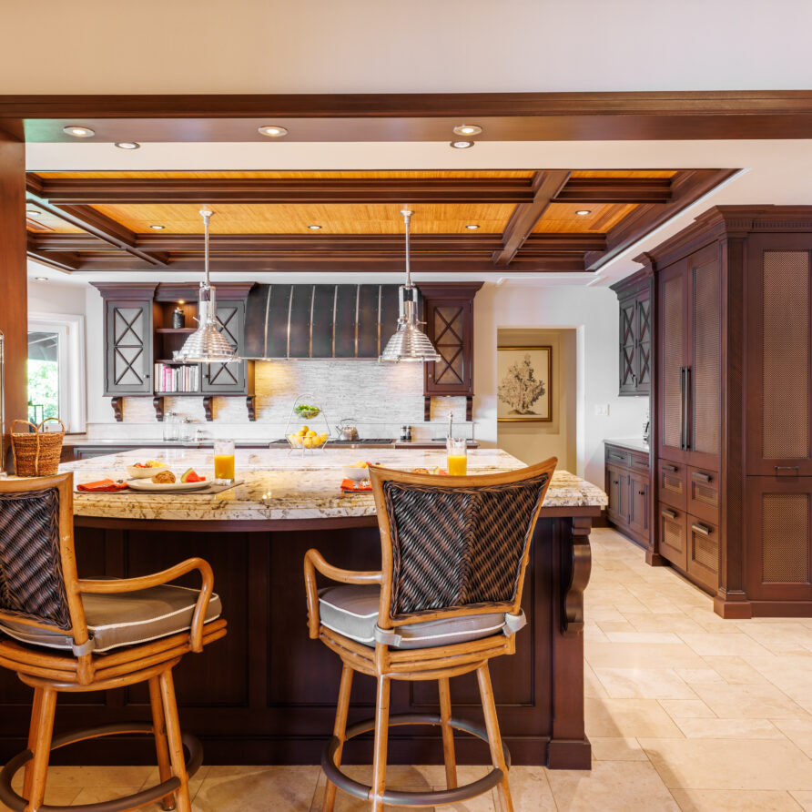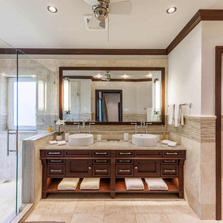 The entry level offers a full service kitchen with Wolf appliances, and enough fridge and freezer space to stock up for a full week. The breakfast bar opens up in to a spacious living room, with a large smart TV and an adjoining office and guest bathroom. A fully covered deck wraps across the front of the villa, and includes a dining area for eight, and a walk up bar for cocktail hour. Just off the kitchen is the master suite, with a large step out balcony, en suite bathroom with glass enclosed shower, and a walk in closet.Â