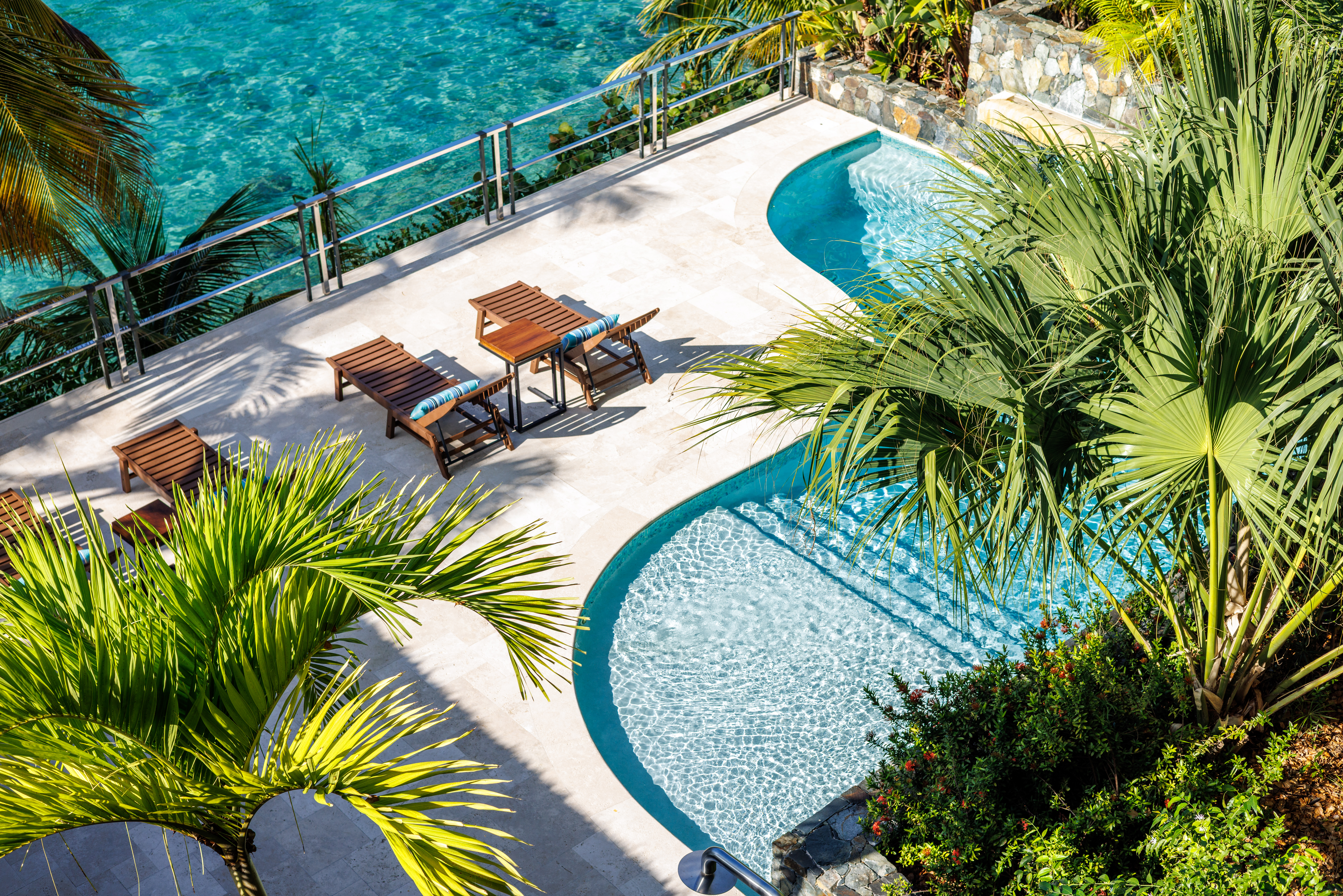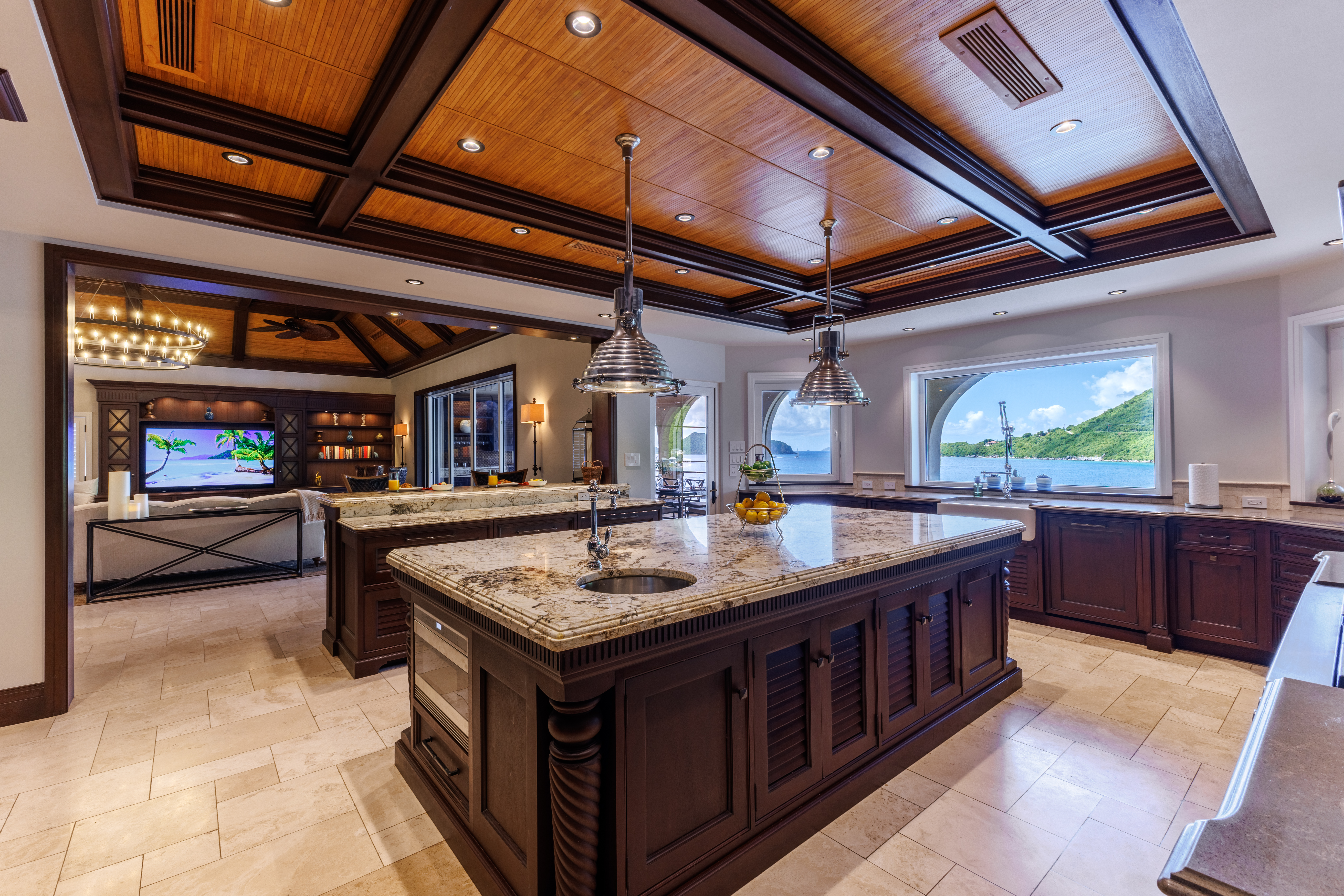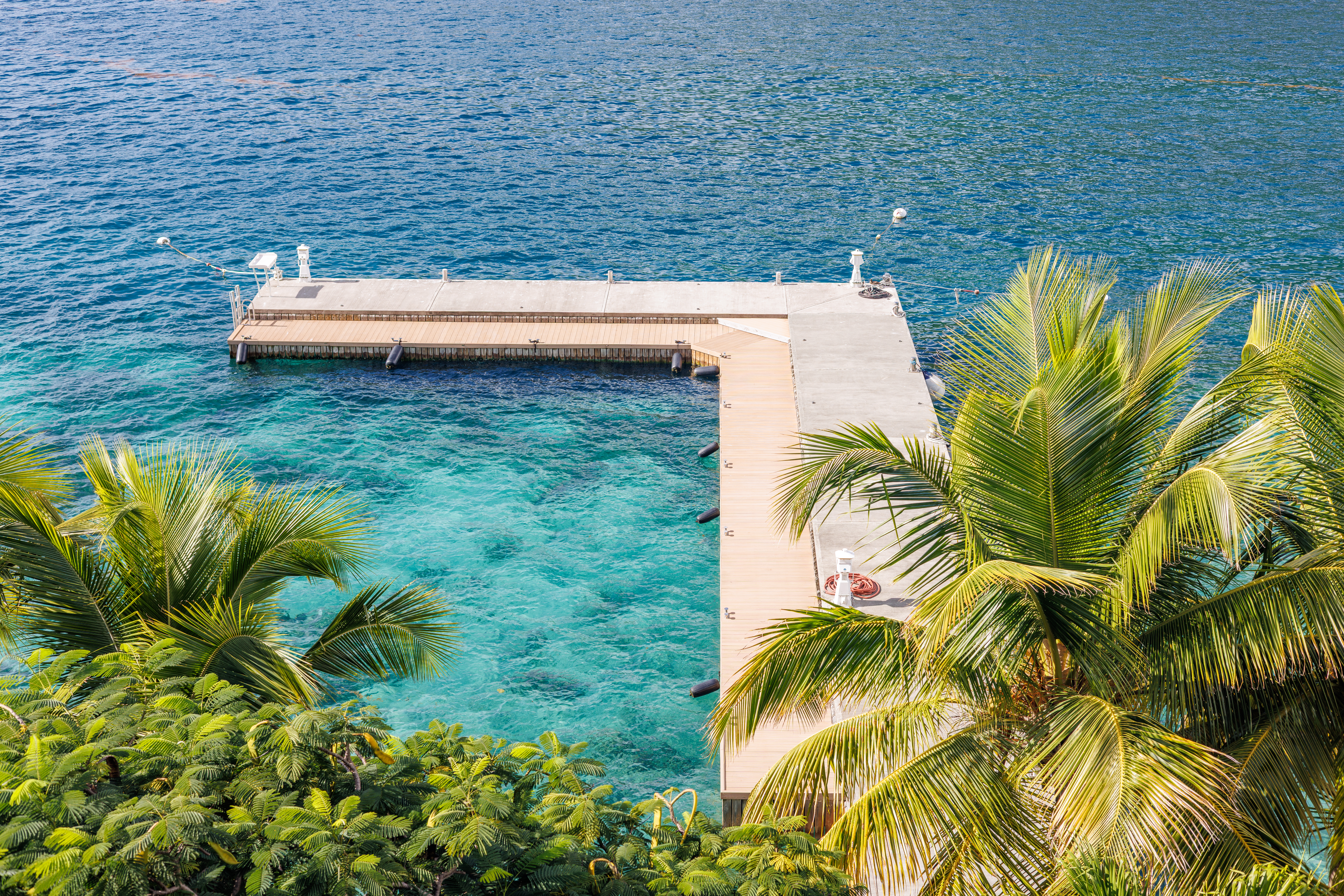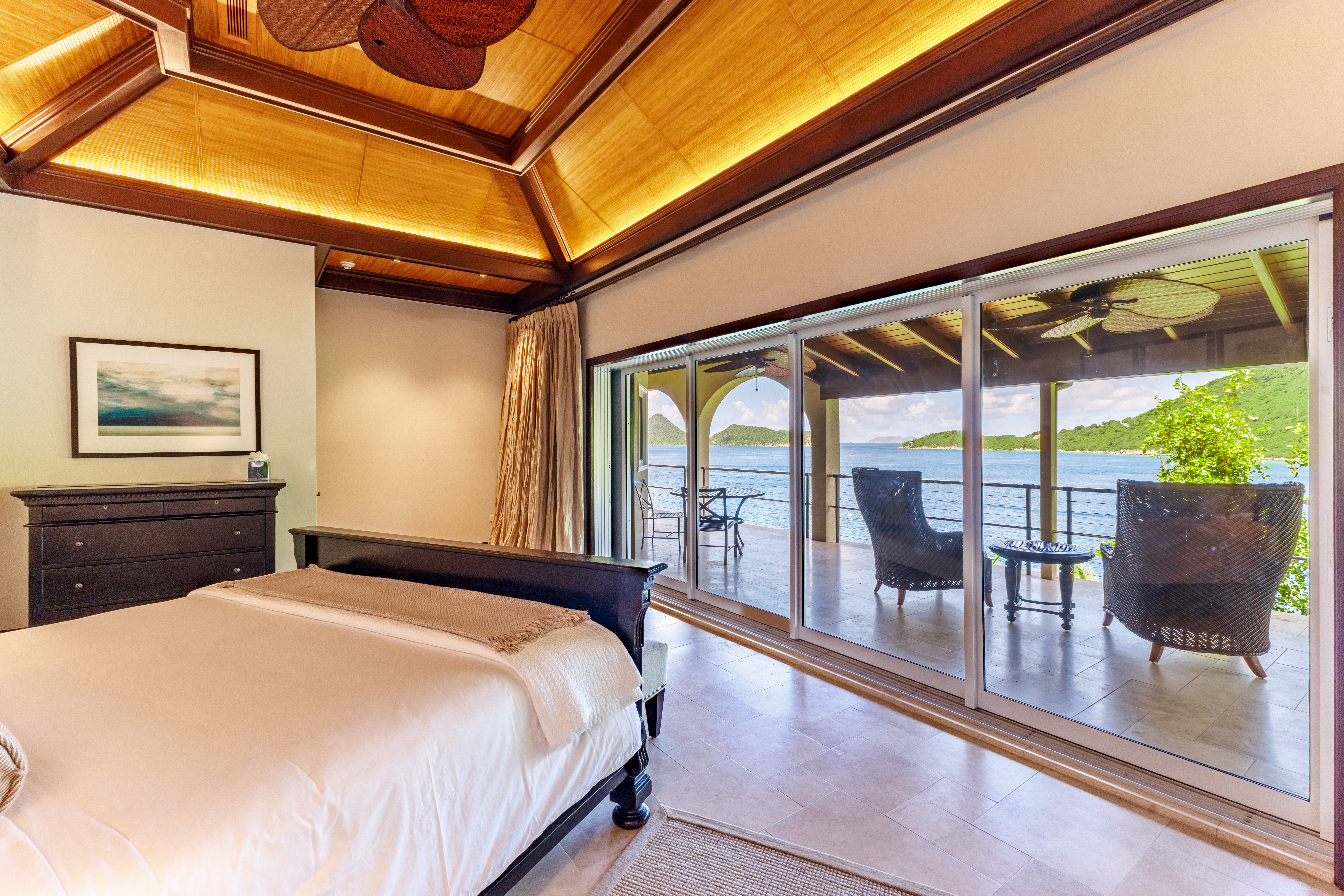 The lower level is home to a workout / yoga area and another full bathroom convenient to the swimming pool and dock. The pool deck is accessed via a second alfresco dining and BBQ area, with sun loungers and couches to relax by the water’s edge, and marvel at the sun setting over Great Thatch. The private dock is available for day charter pickups, leaping in to the crystal clear waters of Sopers Hole, or just dipping your toes in the sea as you watch the pelicans dive for their dinner. Â