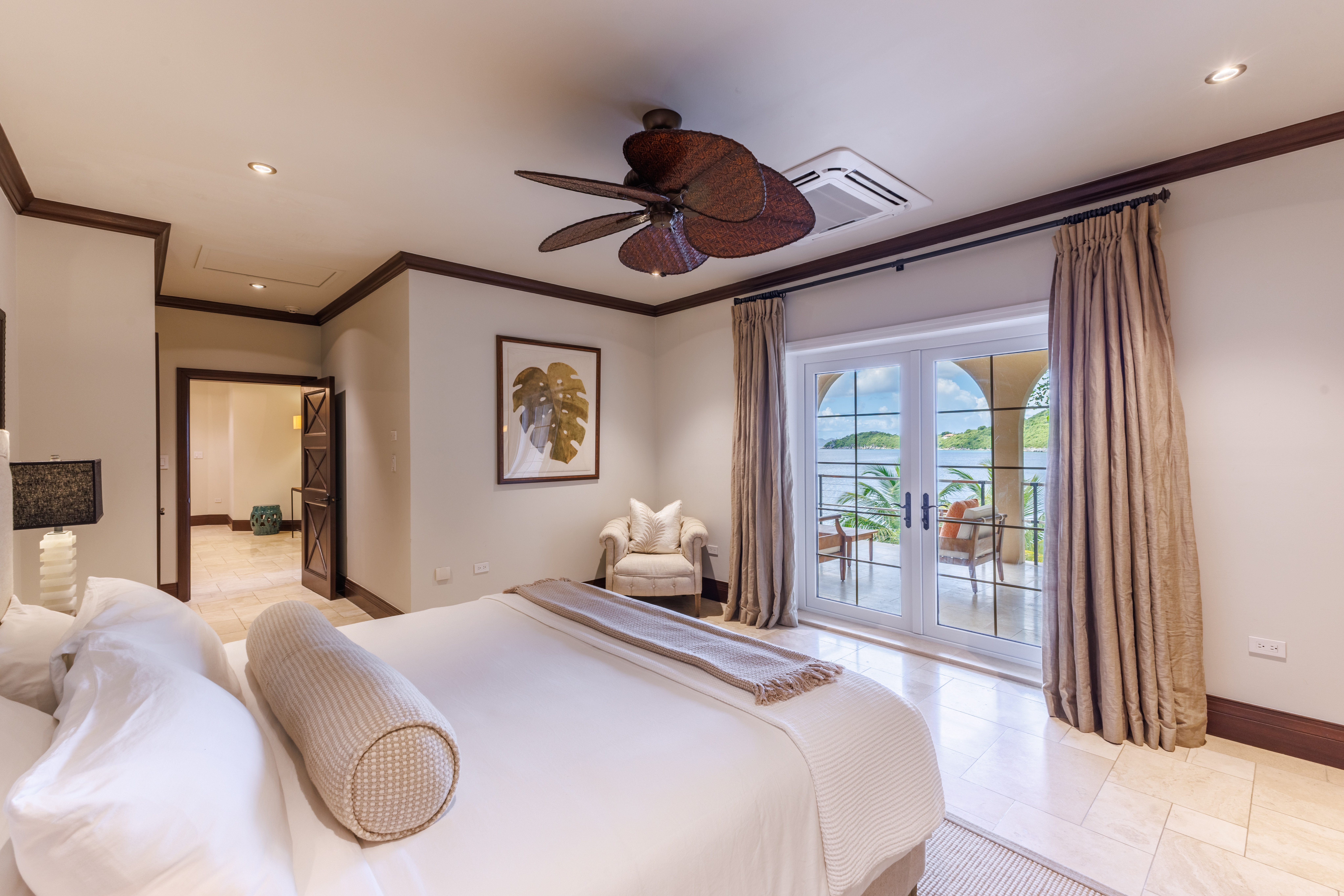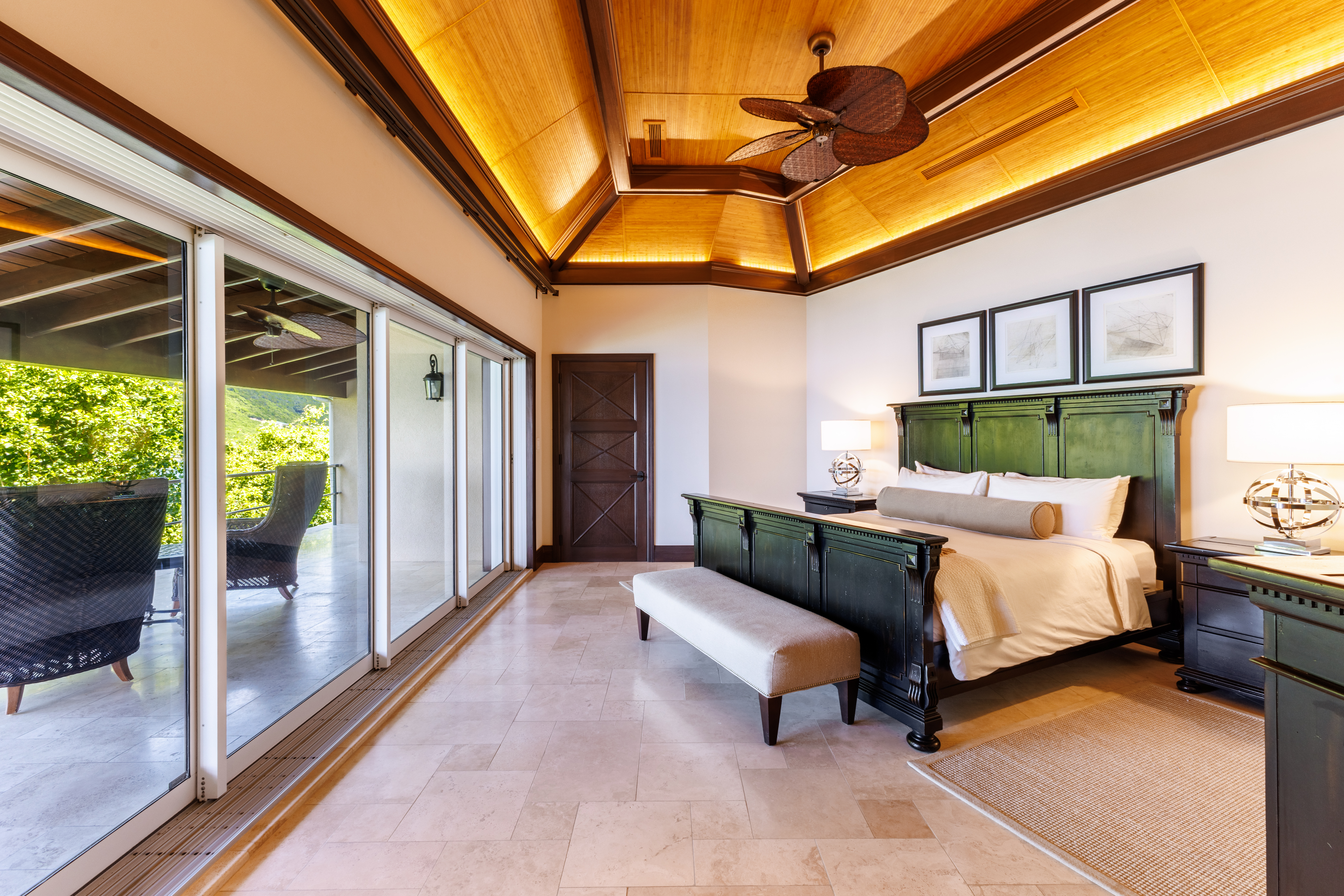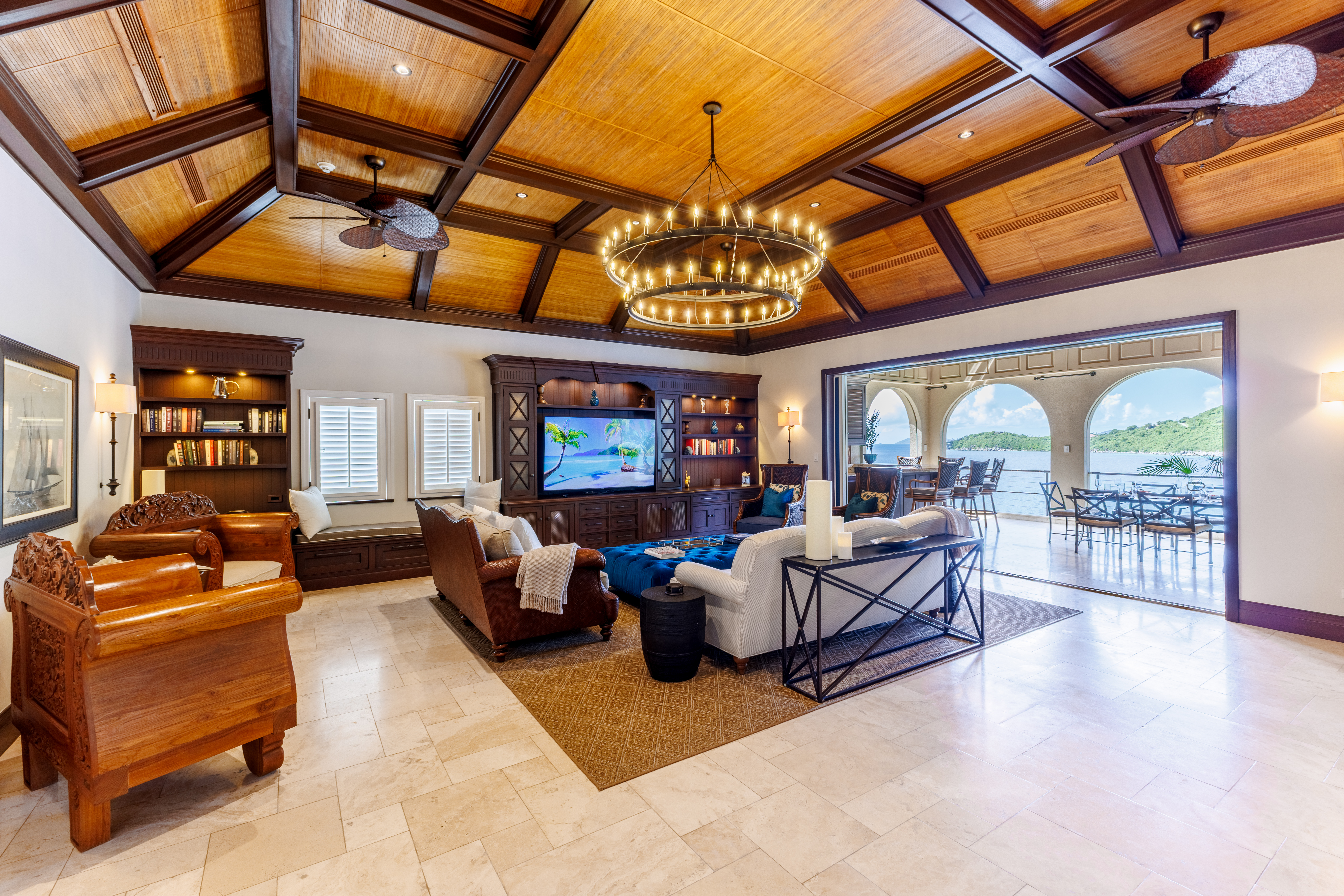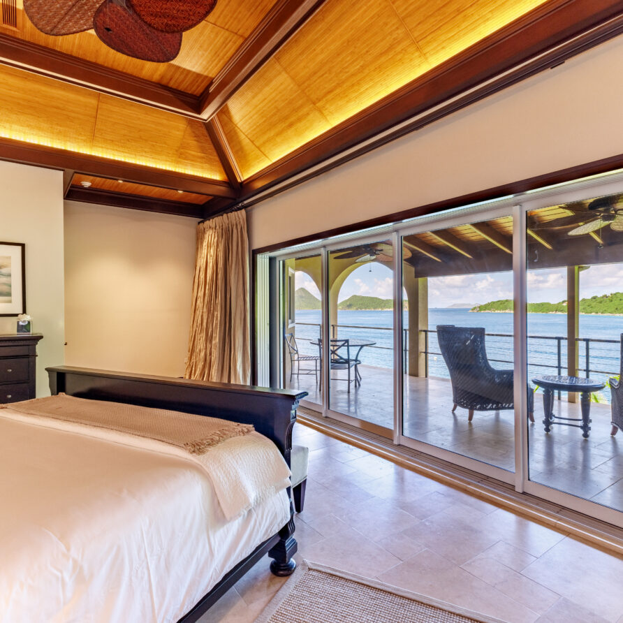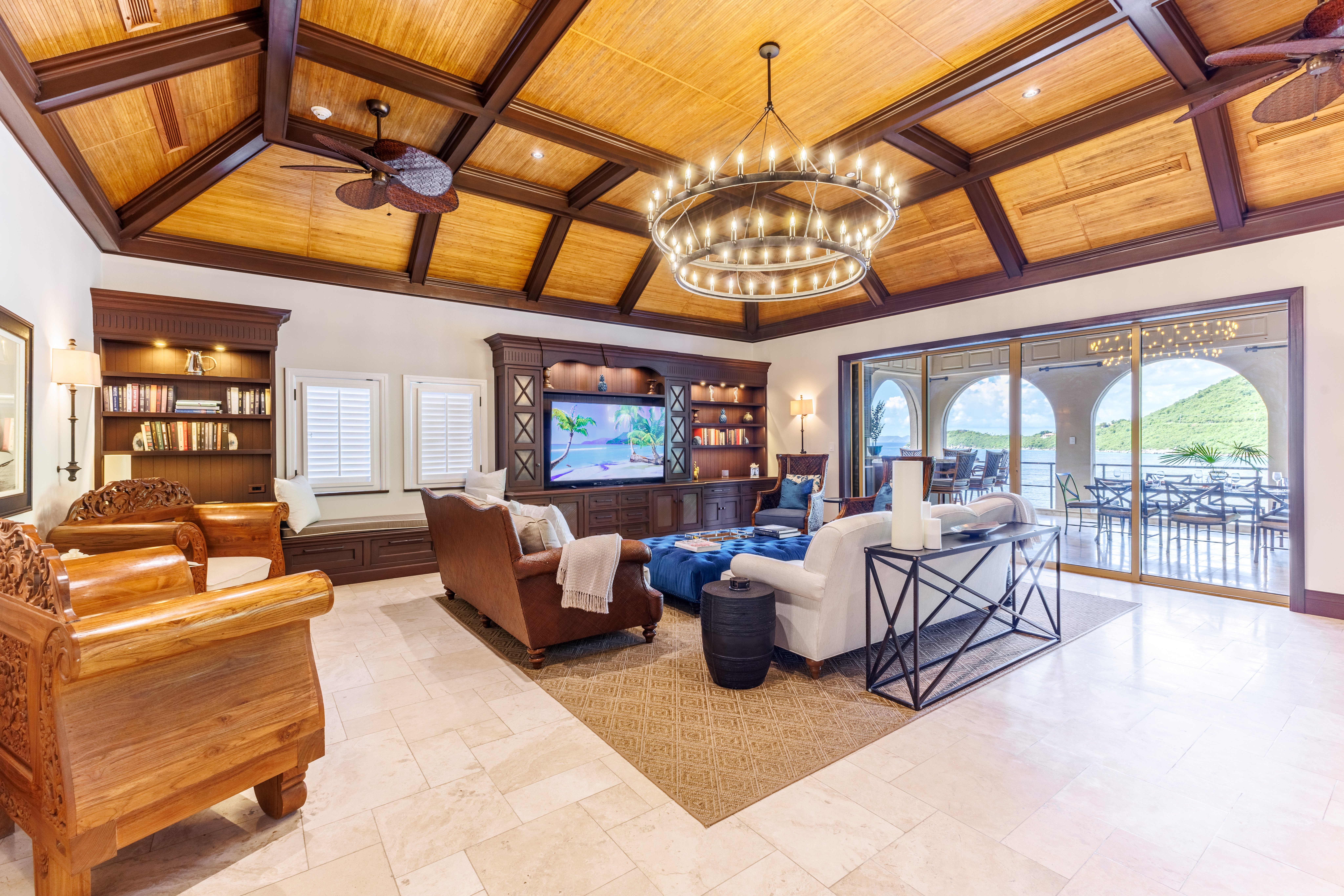 The lower level is home to a workout / yoga area and another full bathroom convenient to the swimming pool and dock. The pool deck is accessed via a second alfresco dining and BBQ area, with sun loungers and couches to relax by the water’s edge, and marvel at the sun setting over Great Thatch. The private dock is available for day charter pickups, leaping in to the crystal clear waters of Sopers Hole, or just dipping your toes in the sea as you watch the pelicans dive for their dinner. Â