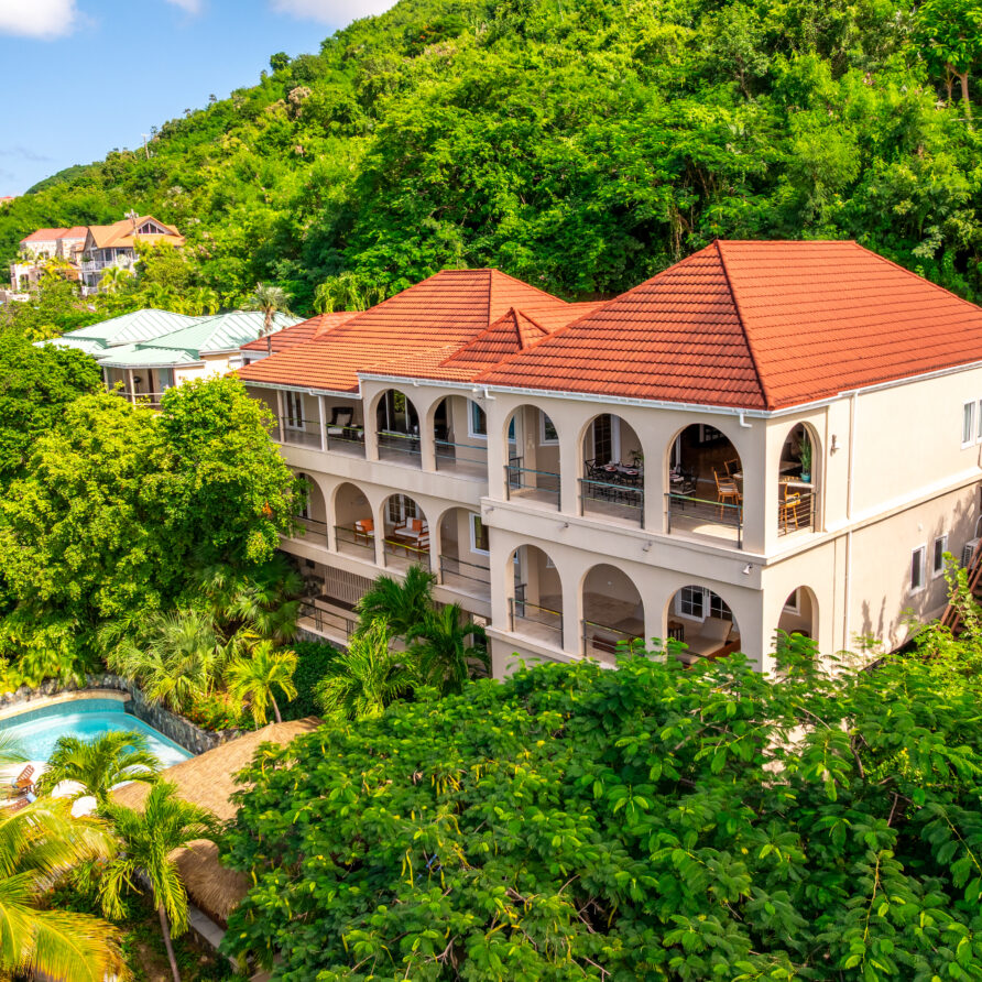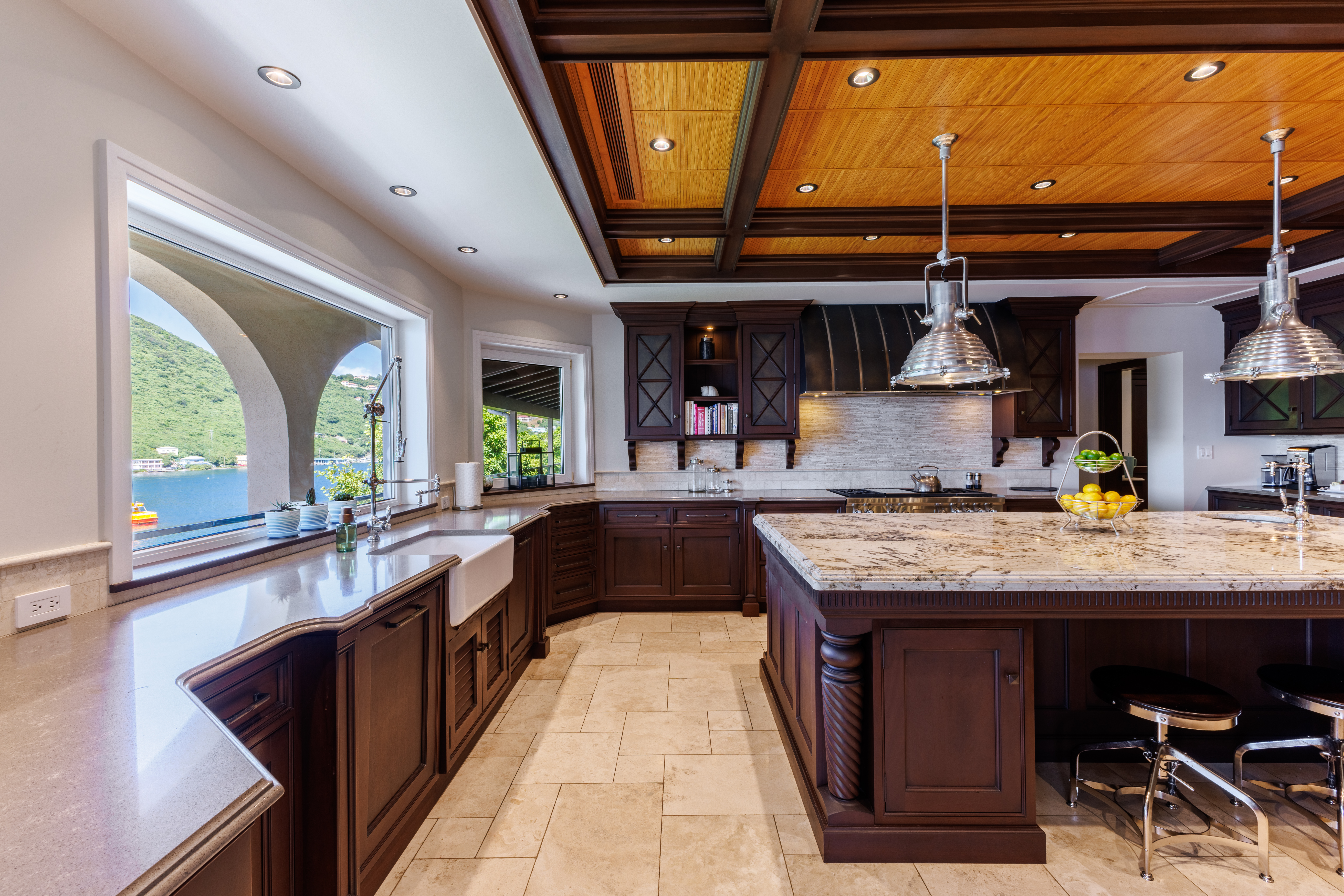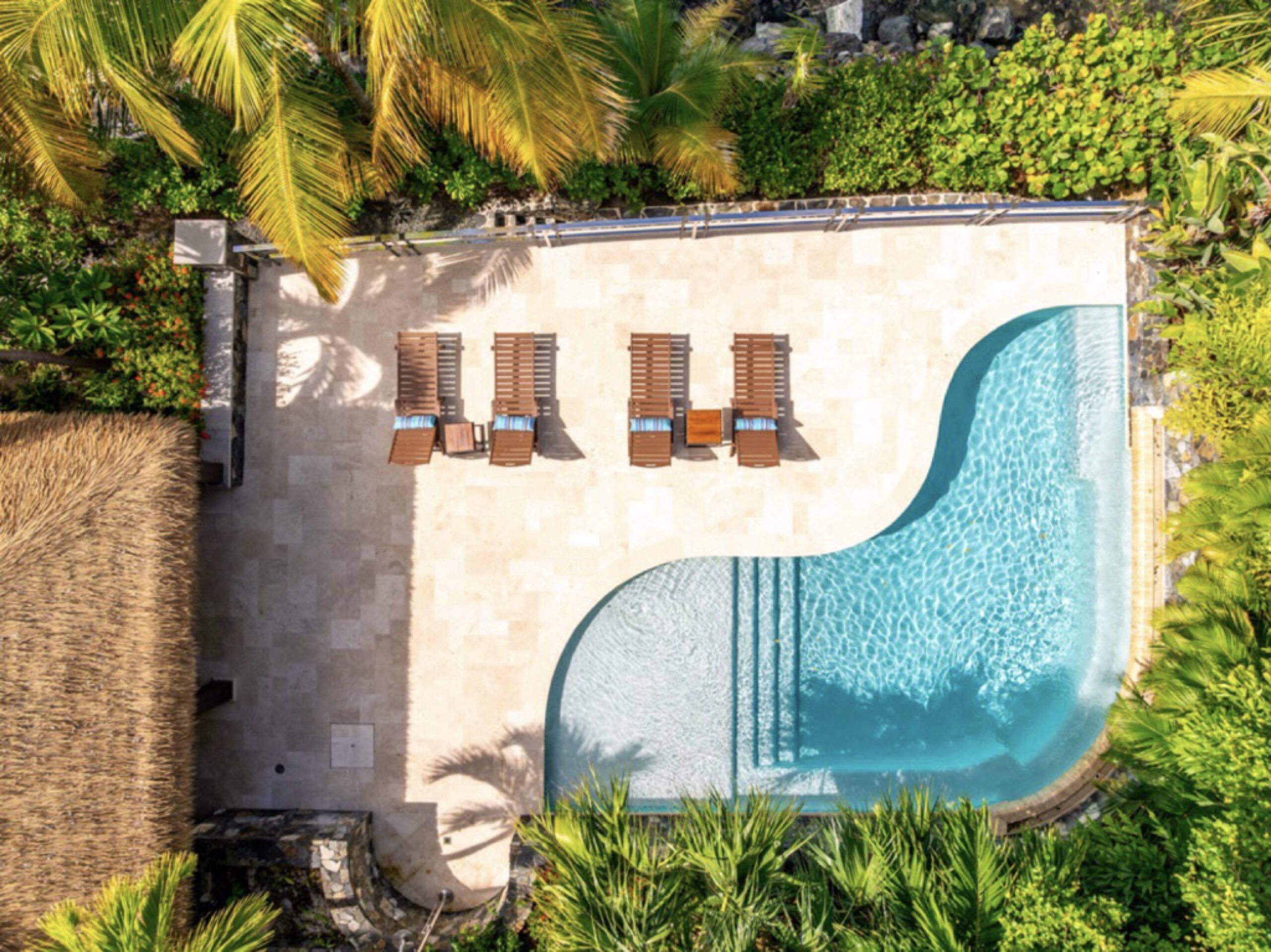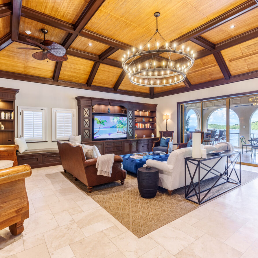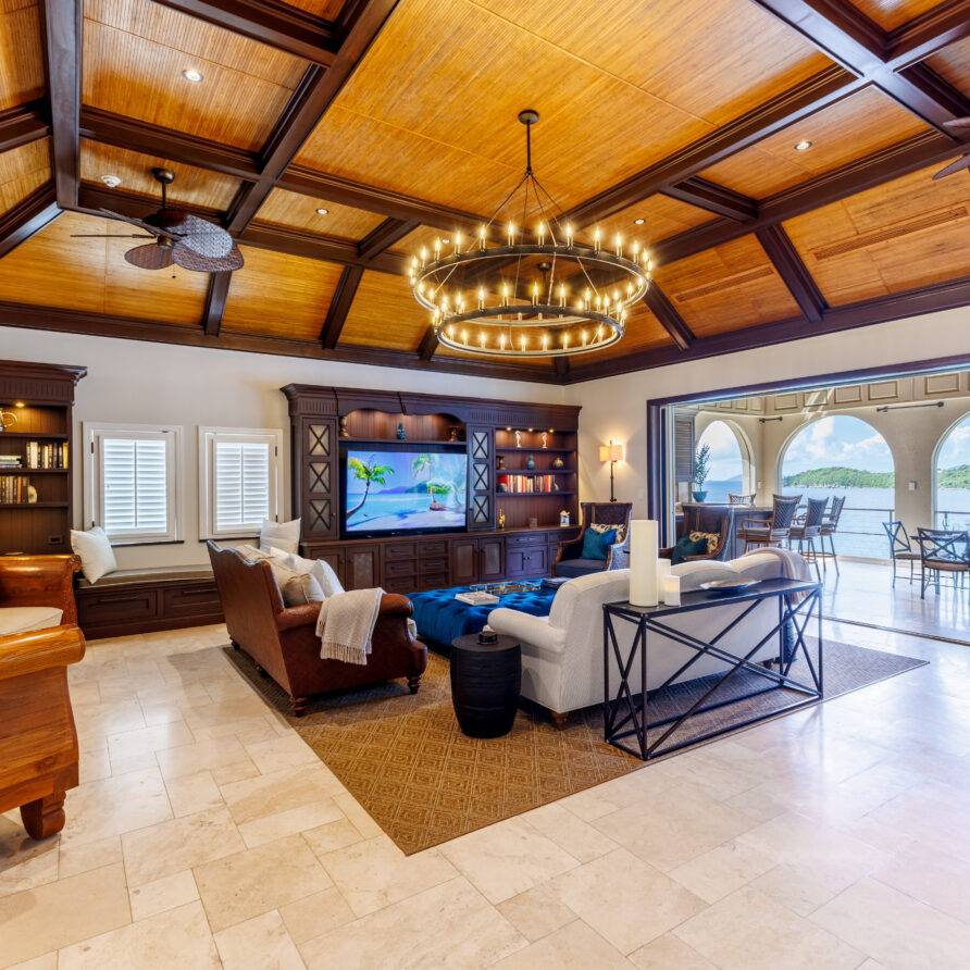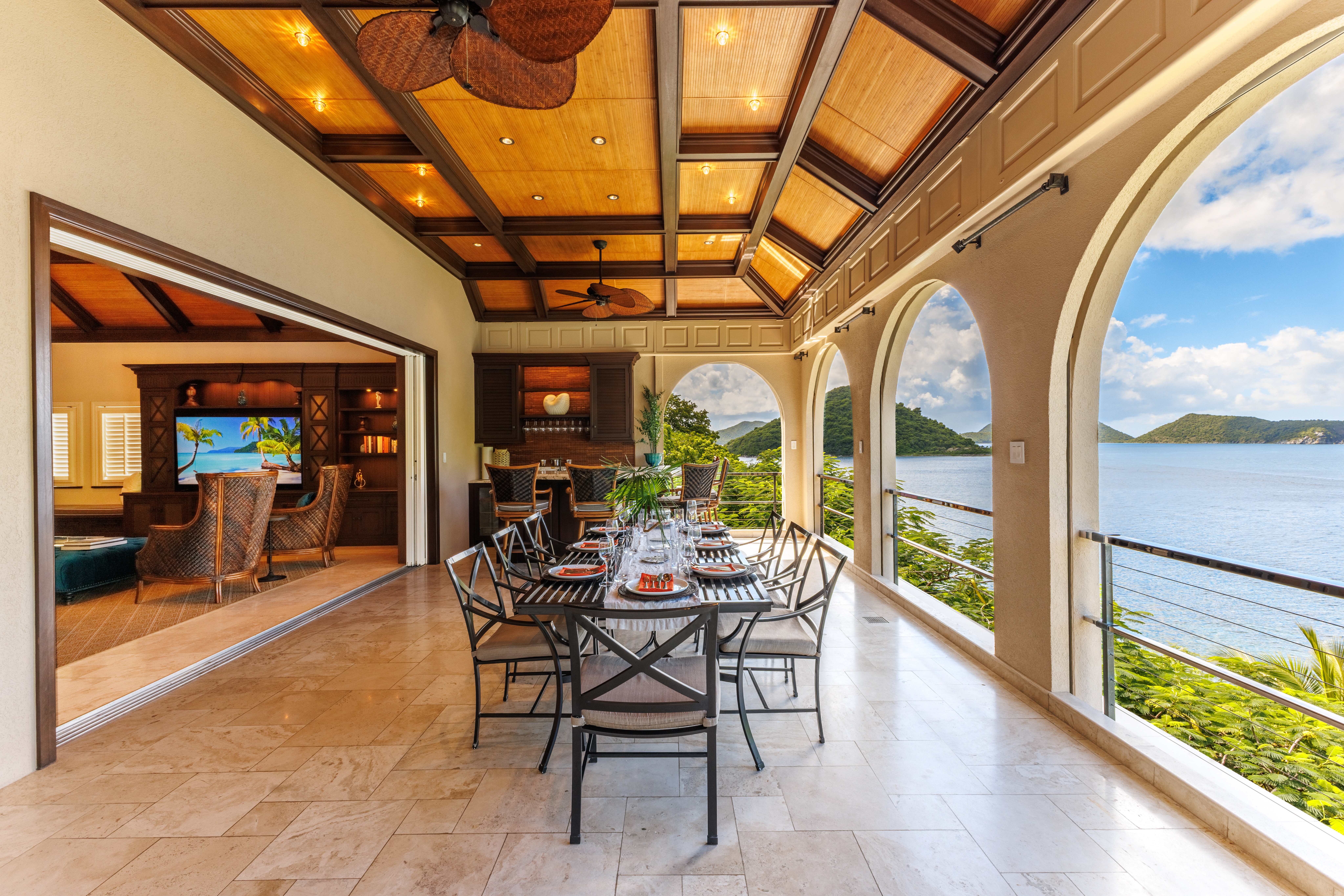 The lower level is home to a workout / yoga area and another full bathroom convenient to the swimming pool and dock. The pool deck is accessed via a second alfresco dining and BBQ area, with sun loungers and couches to relax by the water’s edge, and marvel at the sun setting over Great Thatch. The private dock is available for day charter pickups, leaping in to the crystal clear waters of Sopers Hole, or just dipping your toes in the sea as you watch the pelicans dive for their dinner. Â