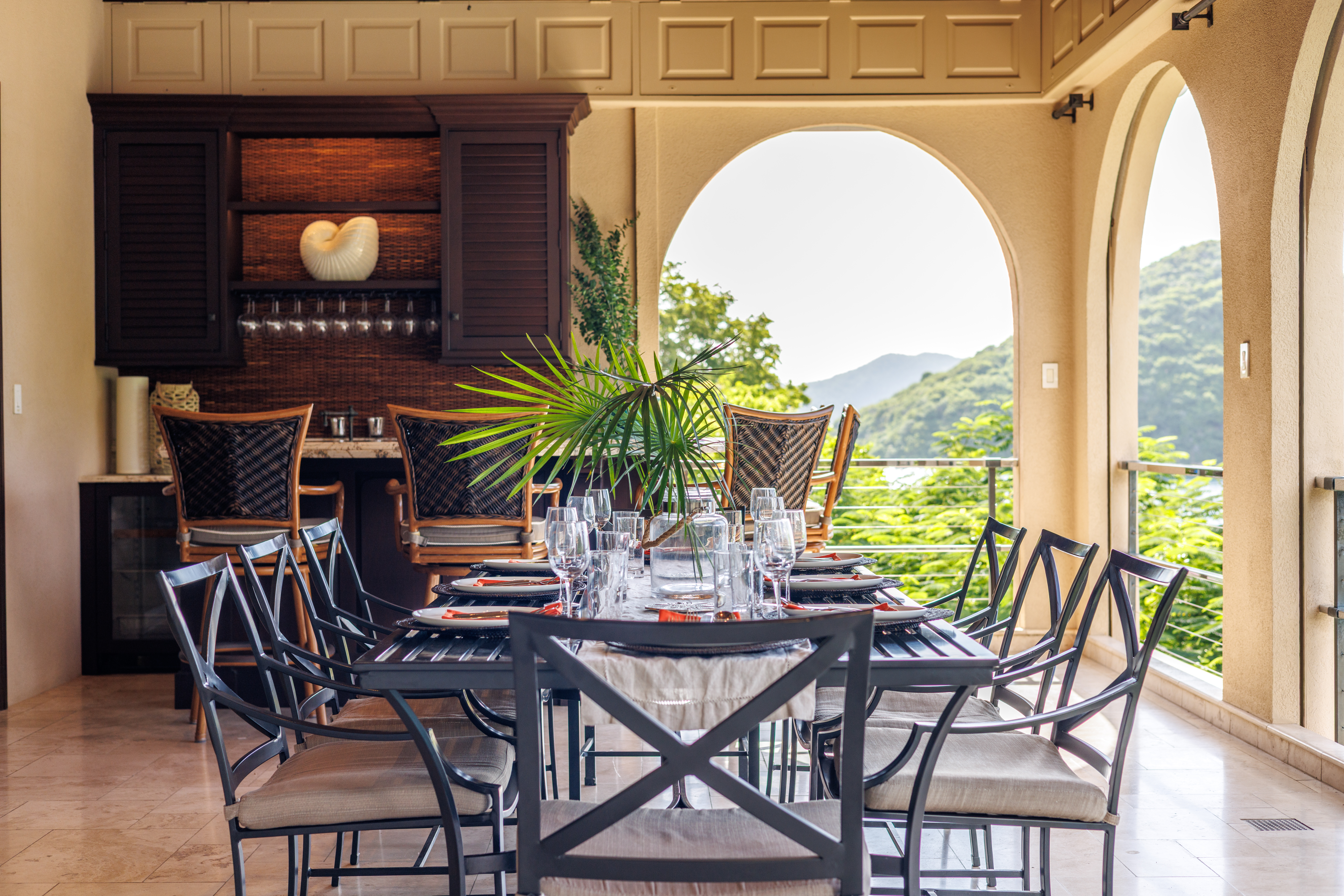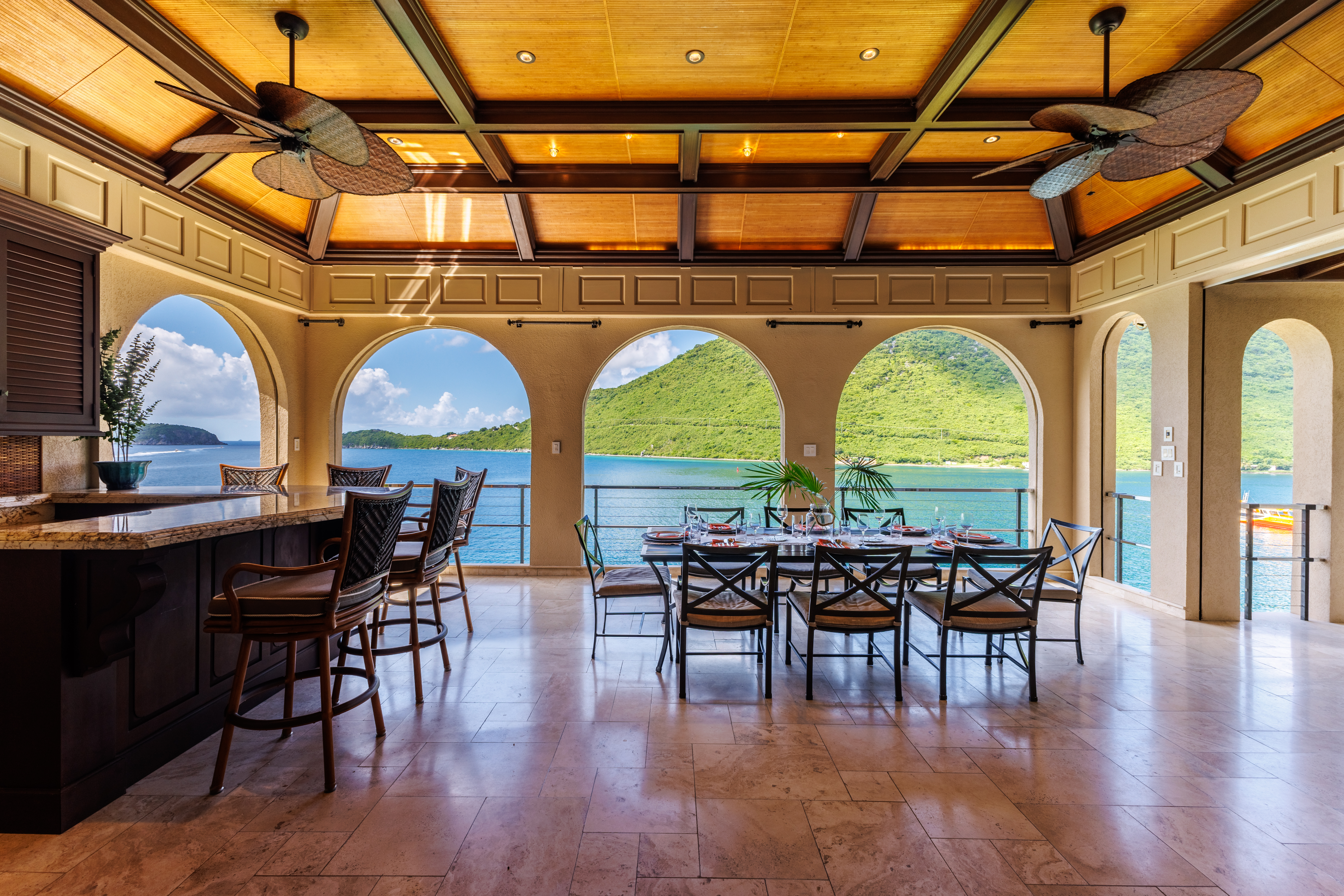 The villa comes fully equipped with a compliment of linens and beach towels, weekly maid service and arrangements can be made for the delivery of pre ordered provisioning and massages or yoga sessions by the pool. Your own dock means you could rent your own rib for exploring the neighboring islands, and then come home to the services of a talented chef to treat you through your stay. Â