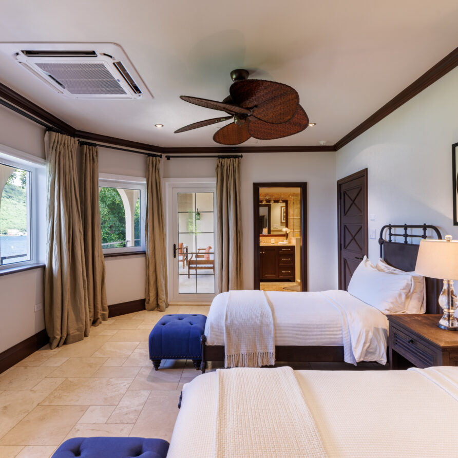 With high speed wifi and AC throughout the whole villa, Indigo Landing is perfectly suited for the business traveler needing to retreat after a busy day, or family and friends wanting to regroup after a day beach combing or exploring the islands by boat. Just a five minute walk away is the colorful Soper’s Hole Marina and Wharf, with a wide selection of boutique shopping, the Harbour Market, various eating and coffee spots and the starting point for deep sea fishing as well as water toy rentals and day snorkeling trips. Across the harbour is the West End ferry terminal with regular ferry trips to Jost van Dyke, and both Smugglers Cove and Long Bay beaches are all within close driving distance, as are a variety of eclectic dining options such as Tramonti and d’Coal Pot on the north shore. Nanny Cay and Road Town are a short drive away, and a pre-arranged jeep rental is highly recommended to get out and explore. Â