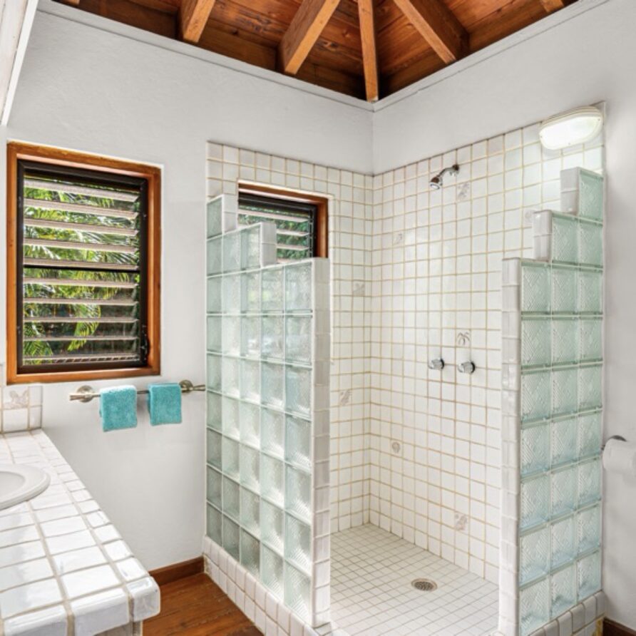 Both bedrooms in the Guest House have outdoor showers that provide complete privacy while looking out on the stunning view.