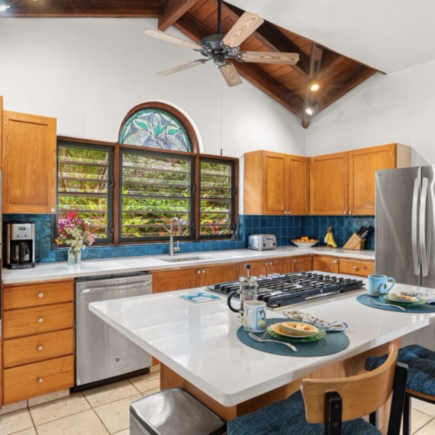 The kitchen provides everything you would need to prepare a gourmet dinner or a quick and easy lunch. This includes high end stainless, abundant glassware from champagne to juice, wedgewood place settings, and quality cookware. The kitchen has counters of architectural glass with solid cedar cabinets and modern appliances including a Thermador gas cooktop.