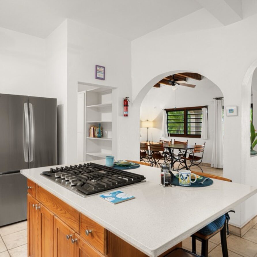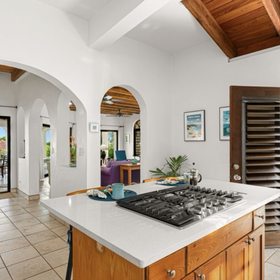 Bellamare is a four-bedroom, five-bath vacation villa in Mahoe Bay, Virgin Gorda. The Main House features an open living room, dining room and kitchen with two full bedrooms with ensuite baths on the second floor. A separate building, the Seapod is joined to the Main House by a covered walkway. The Seapod has two full studio bedrooms, perfect for older children, adult family members, and friends.