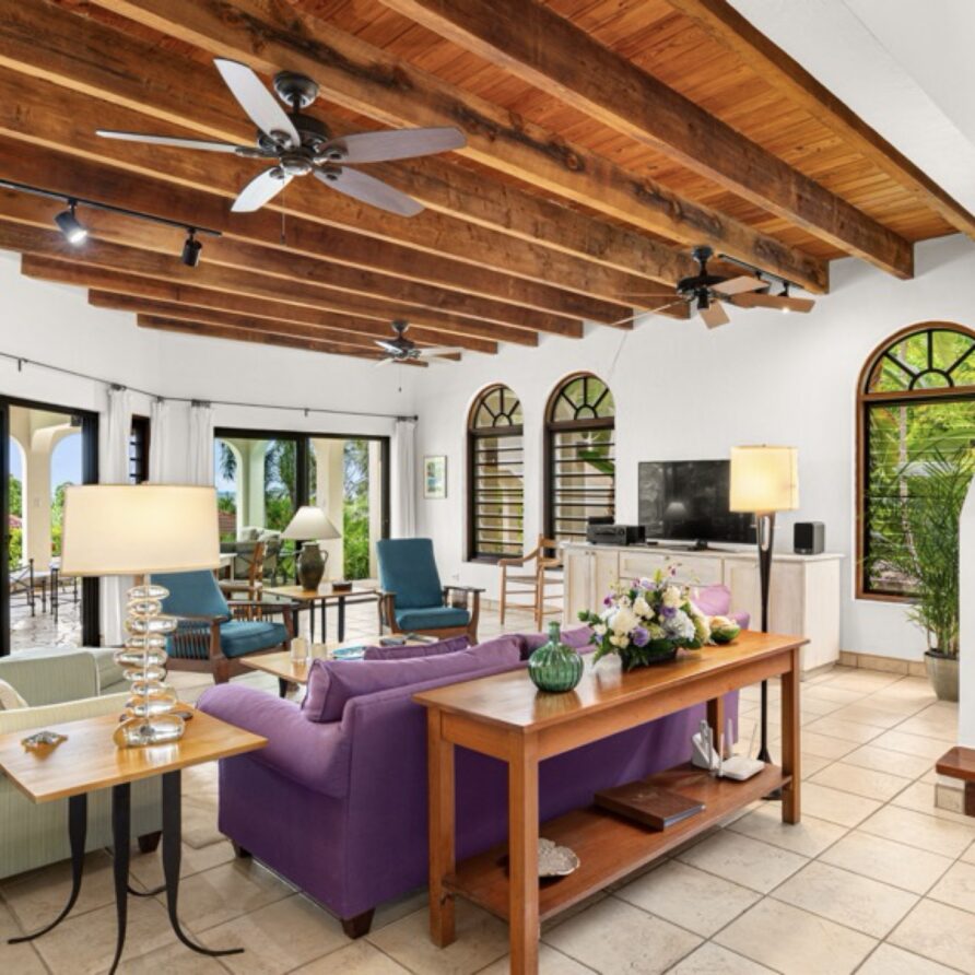 The living and the dining room while separated by open arches, are joined by the veranda which runs along the entire length of the villa.
